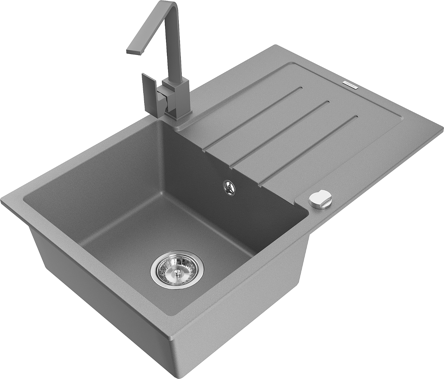 Mexen Bruno žulový kuchynský drez s 1 komorou a odkvapkávacou plochou a kuchynskou batériou Rita, sivá - 6513-71-670300-71