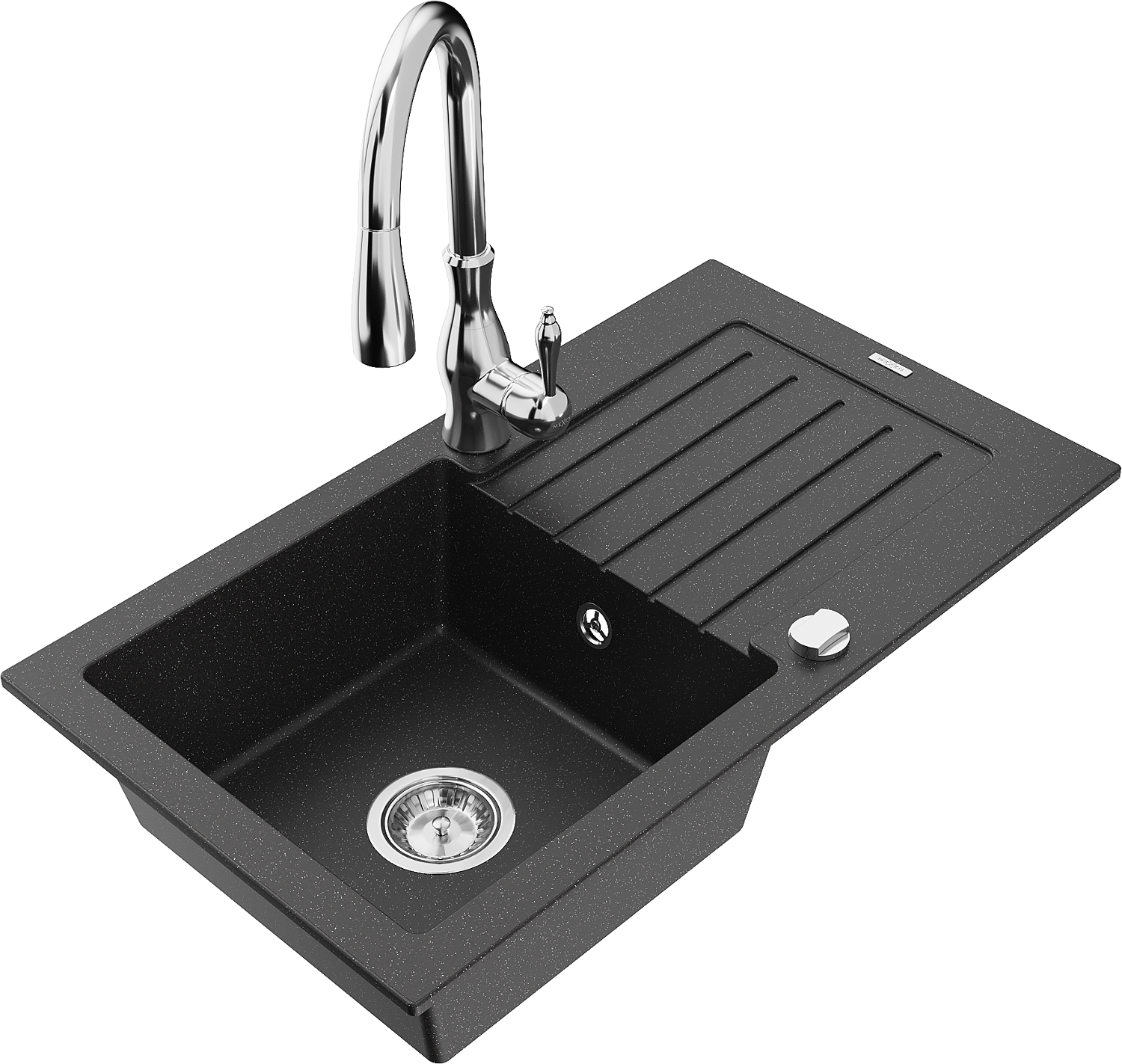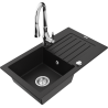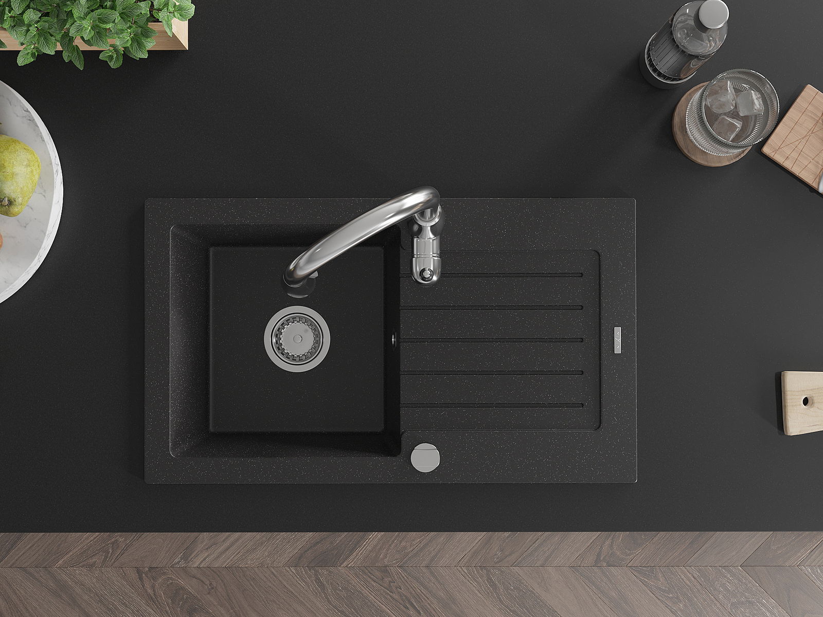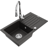 Mexen Pablo granitový jednodrez s odkvapkávačom a kuchynskou batériou Savita, čierny/strieborný metalik