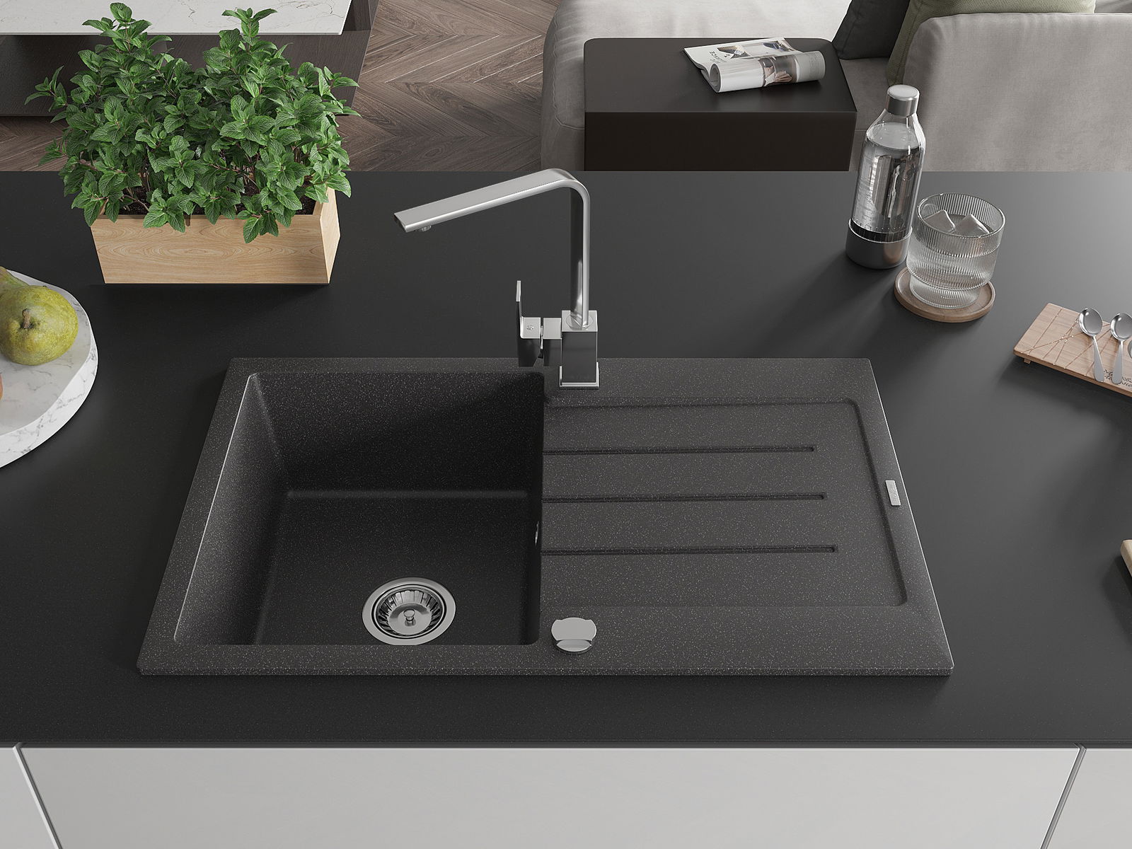 Drez bol vyrobený z vysoko kvalitného granitu. Predstavuje elegantné, ale predovšetkým praktické doplnenie každej kuchyne, nezávisle od jej štýlu. Vysoká kvalita a trvácnosť granitu zaisťujú dlhodobé používanie.