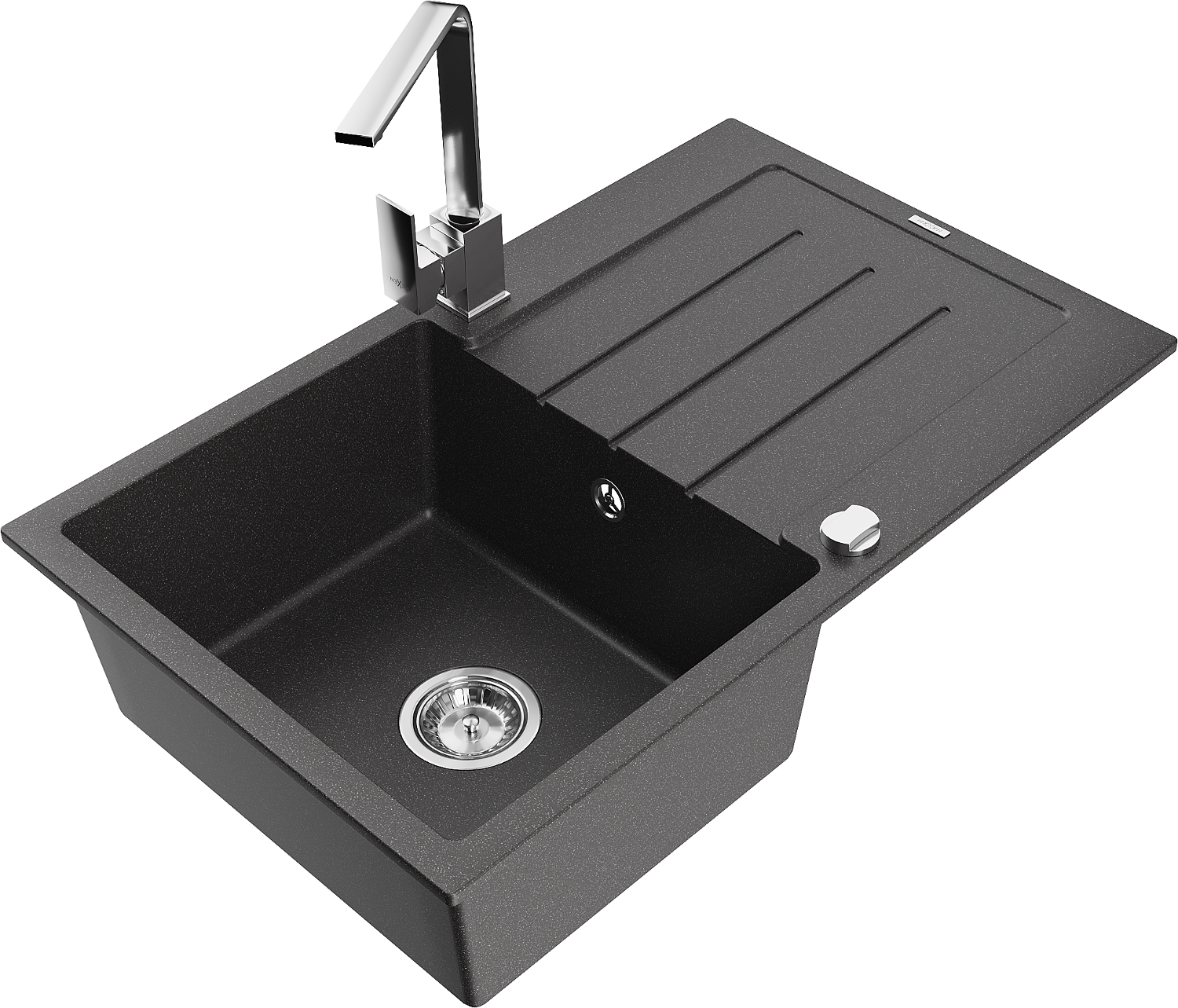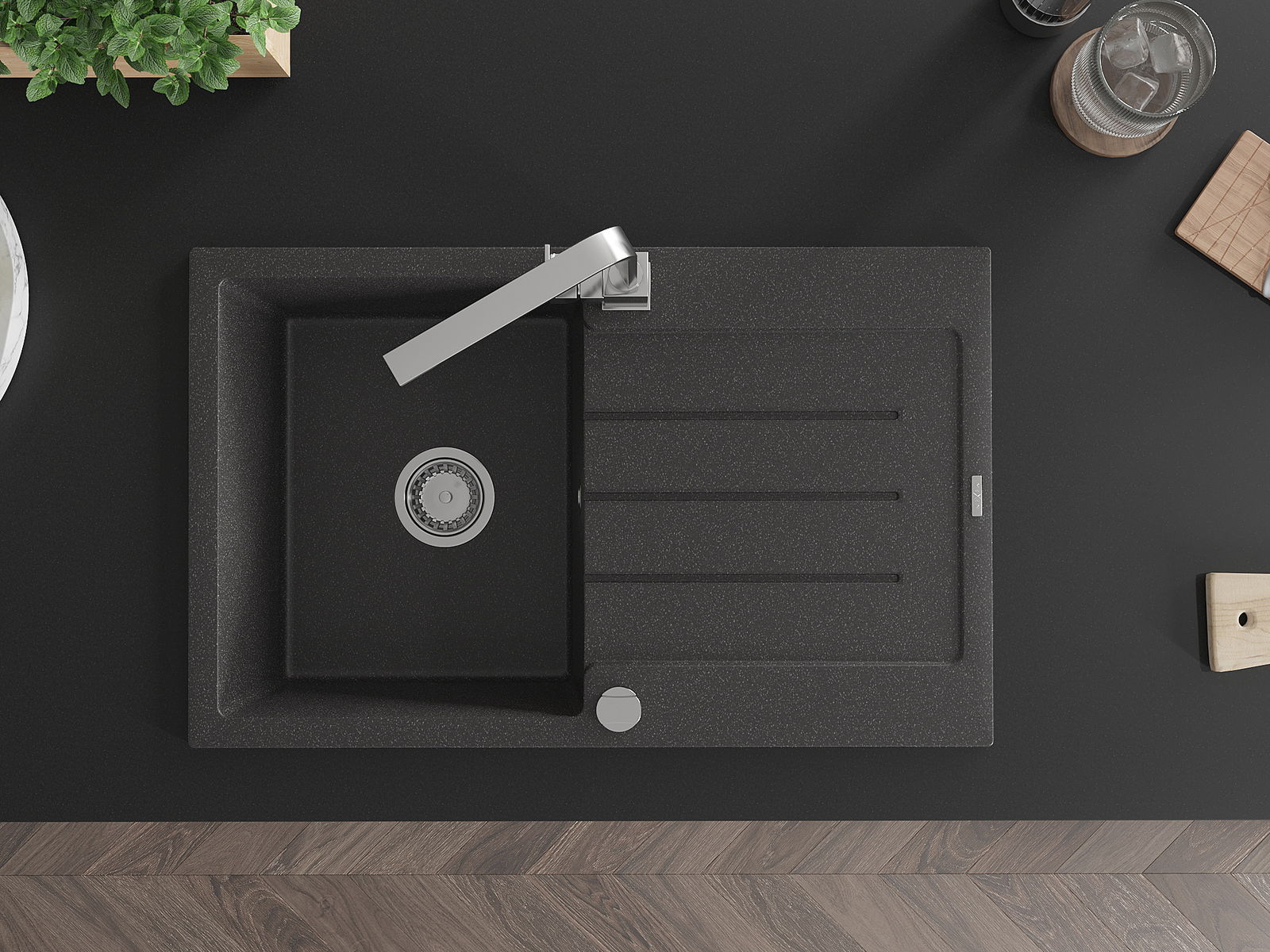 Povrch kuchynského drezu je odolný voči škvrnám a zafarbeniu, vďaka čomu sa ľahko udržiava a zachováva svoju farbu počas dlhého obdobia používania. Estetický a praktický doplnok pre každú kuchyňu.
