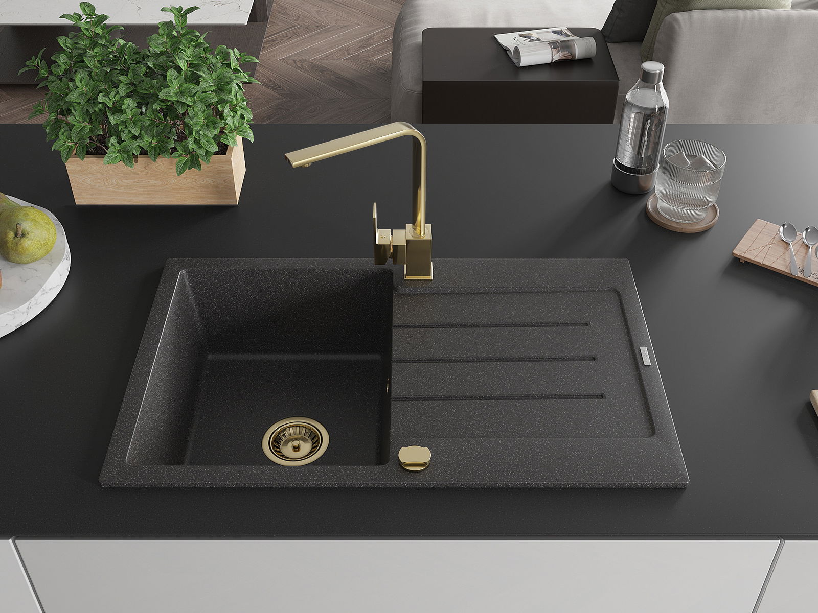 Drez bol vyrobený z vysoko kvalitného granitu. Predstavuje elegantný a predovšetkým praktický doplnok každej kuchyne, nezávisle od jej štýlu. Vysoká kvalita a trvácnosť granitu zaručujú mnohoročné používanie.