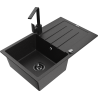 Mexen Bruno granitový drez s 1 komorou s odkvapkávačom a kuchynskou batériou Rita, čierny s bodkami - 6513-76-670300-70-B