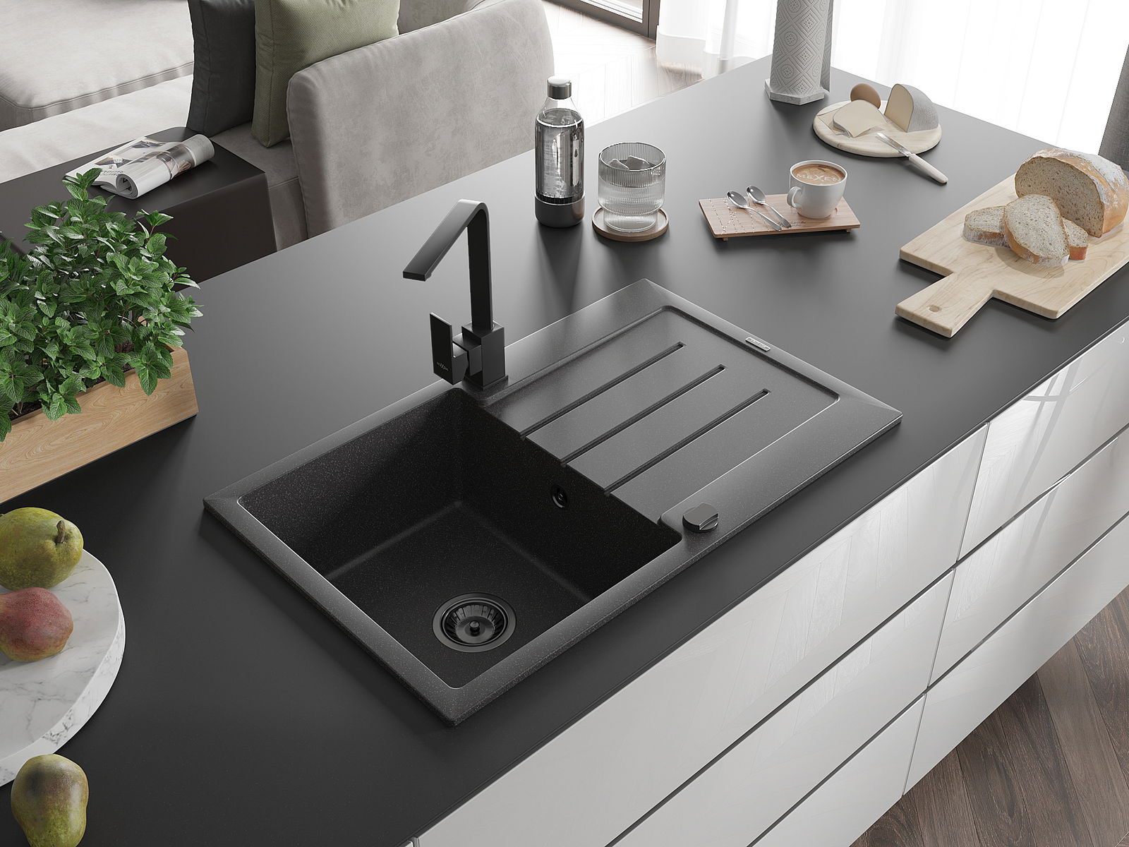 Drez bol vyrobený z vysoko kvalitného granitu. Predstavuje elegantné, ale predovšetkým praktické doplnenie každej kuchyne, nezávisle od jej štýlu. Vysoká kvalita a trvácnosť granitu zaisťujú dlhodobé používanie.
