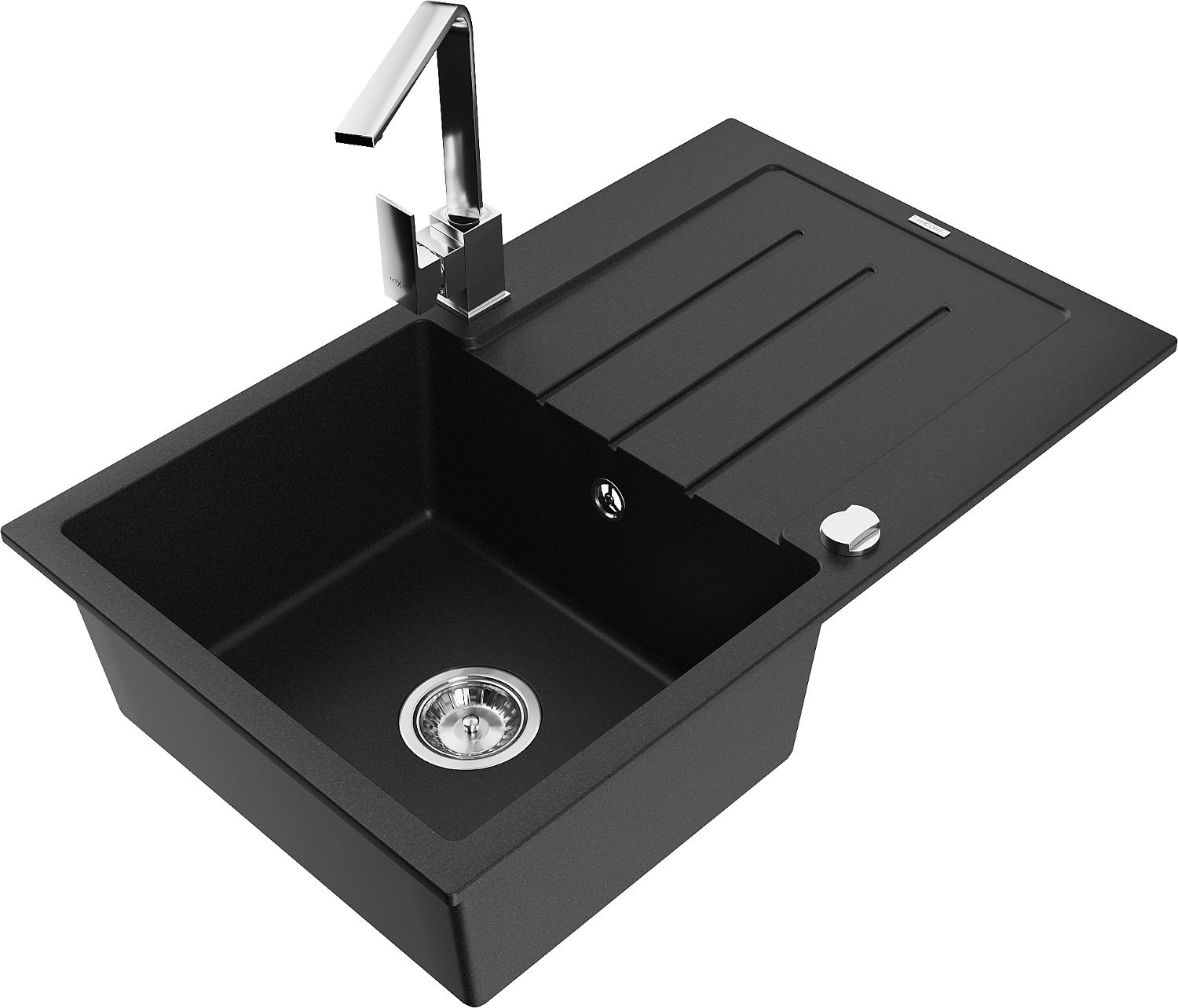 Mexen Bruno granitový drez 1-komorový s odkvapkávačom a kuchynskou batériou Rita, čierny - 6513-77-670300-00