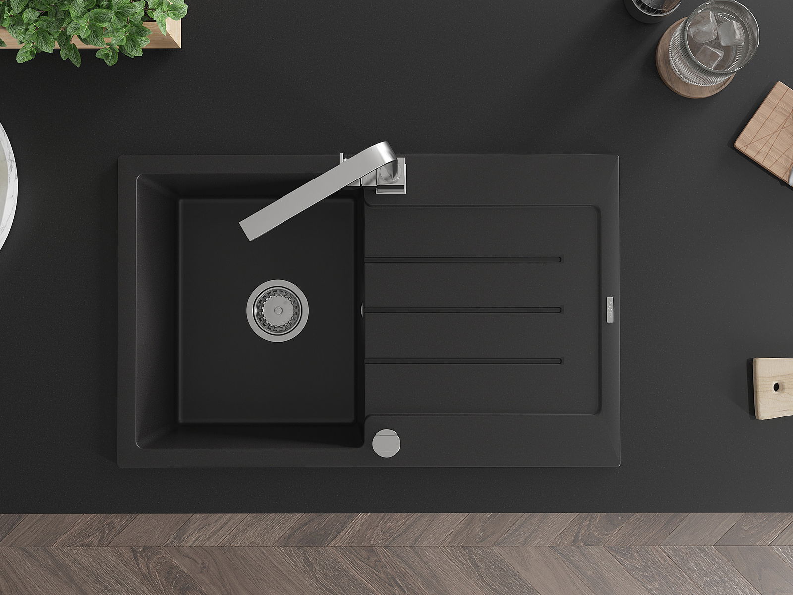 Povrch umývadla je odolný voči škvrnám a sfarbeniu, vďaka čomu sa ľahko čistí a zachováva si svoju farbu po dlhú dobu. Estetický a prakticky dopĺňajúci každú kuchyňu.
