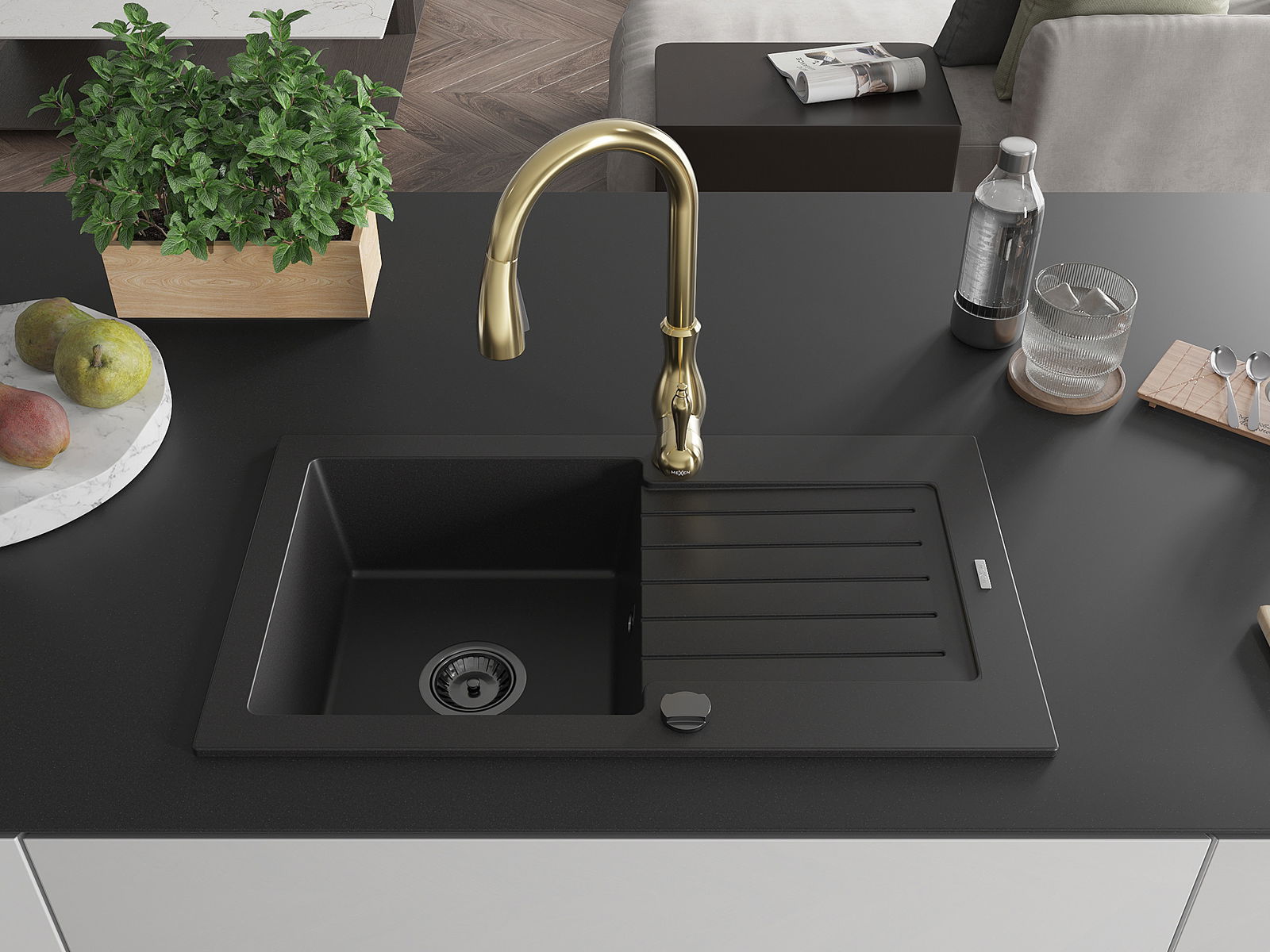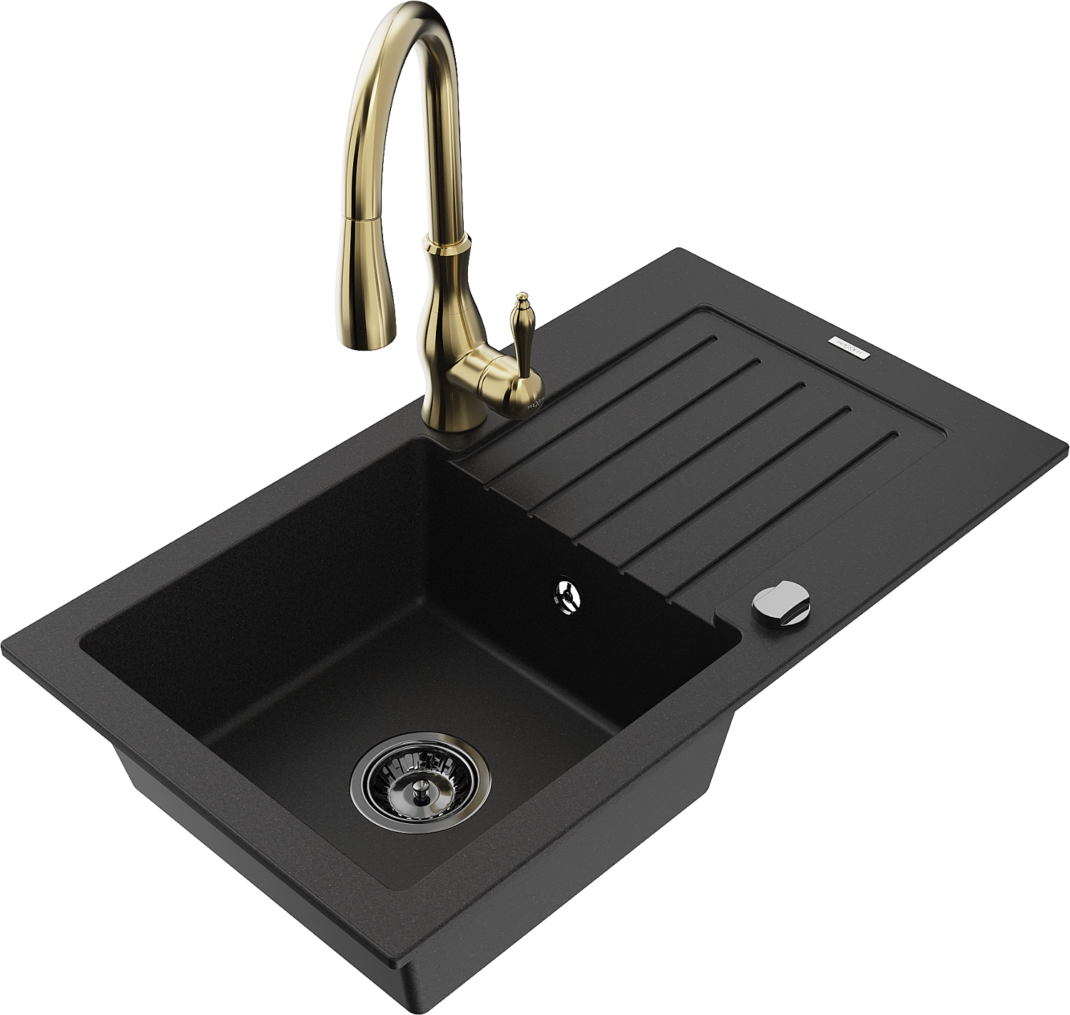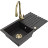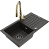 Mexen Pablo granitový kuchynský drez s 1 komorou, odkvapávačom a kuchynskou batériou Savita, čierny - 6510-77-672601-50-B