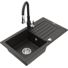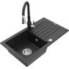 Mexen Pablo granitový kuchynský drez s 1 komorou a odkvapkávačom a kuchynská batéria Savita, čierny - 6510-77-672601-70