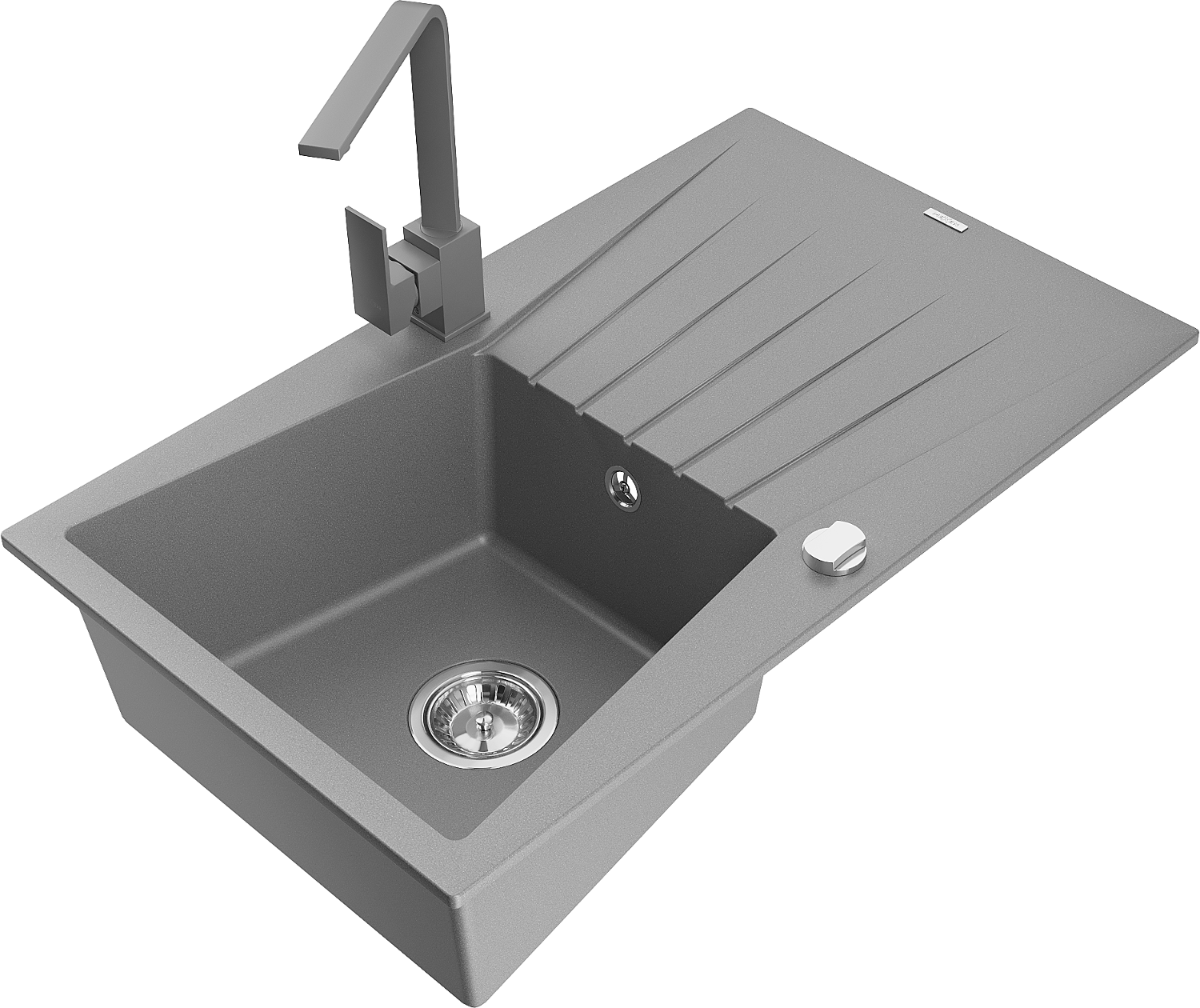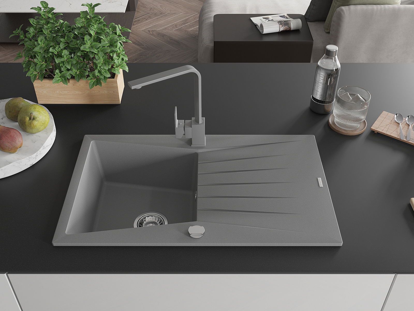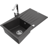 Mexen Cesar žulový drez 1-komorový s odkvapkávačom a kuchynskou batériou Rita, sivý - 6514-71-670300-71