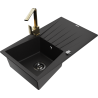 Mexen Cesar granitový drez, 1-komorový s odkvapkávačom a kuchynskou batériou Rita, čierny/zlatý metalický - 6514-75-670300-50-B
