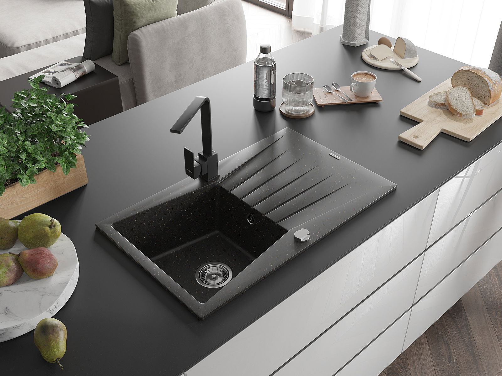 Drez bol vyrobený z vysoko kvalitného granitu. Predstavuje elegantné, ale predovšetkým praktické doplnenie každej kuchyne, nezávisle od jej štýlu. Vysoká kvalita a trvácnosť granitu zaisťujú dlhodobé používanie.