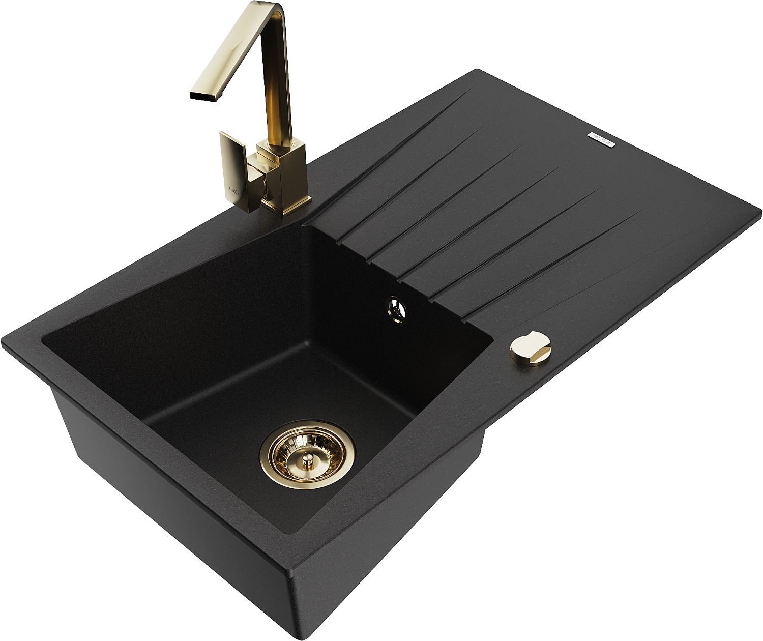 Mexen Cesar granitový drezy 1-komorový s odkvapkávačom a kuchynskou batériou Rita, čierny - 6514-77-670300-50