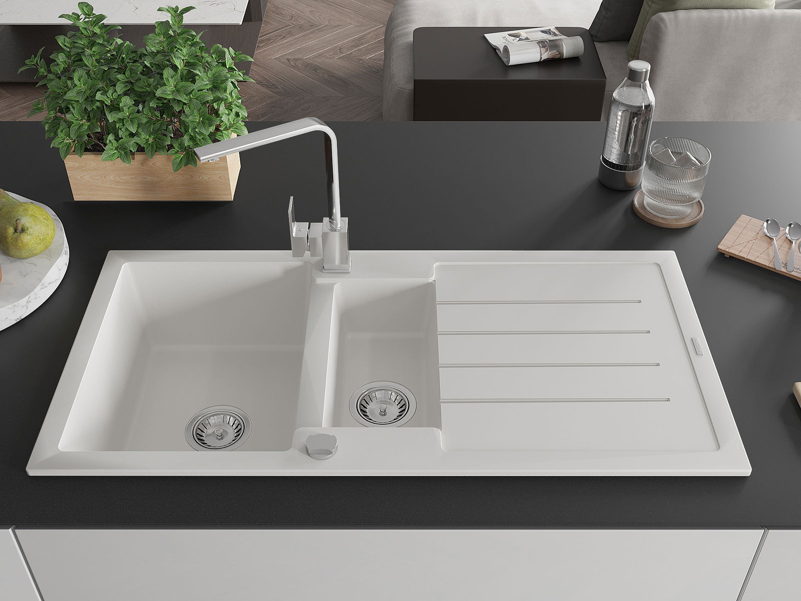 Povrch umývadla je odolný voči škvrnám a sfarbeniu, vďaka čomu sa ľahko čistí a zachováva si svoju farbu po dlhú dobu. Estetický a prakticky dopĺňajúci každú kuchyňu.