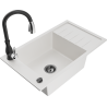 Povrch kuchynského drezu je odolný voči škvrnám a zafarbeniu, vďaka čomu sa ľahko udržiava a zachováva svoju farbu počas dlhého obdobia používania. Estetický a praktický doplnok pre každú kuchyňu.