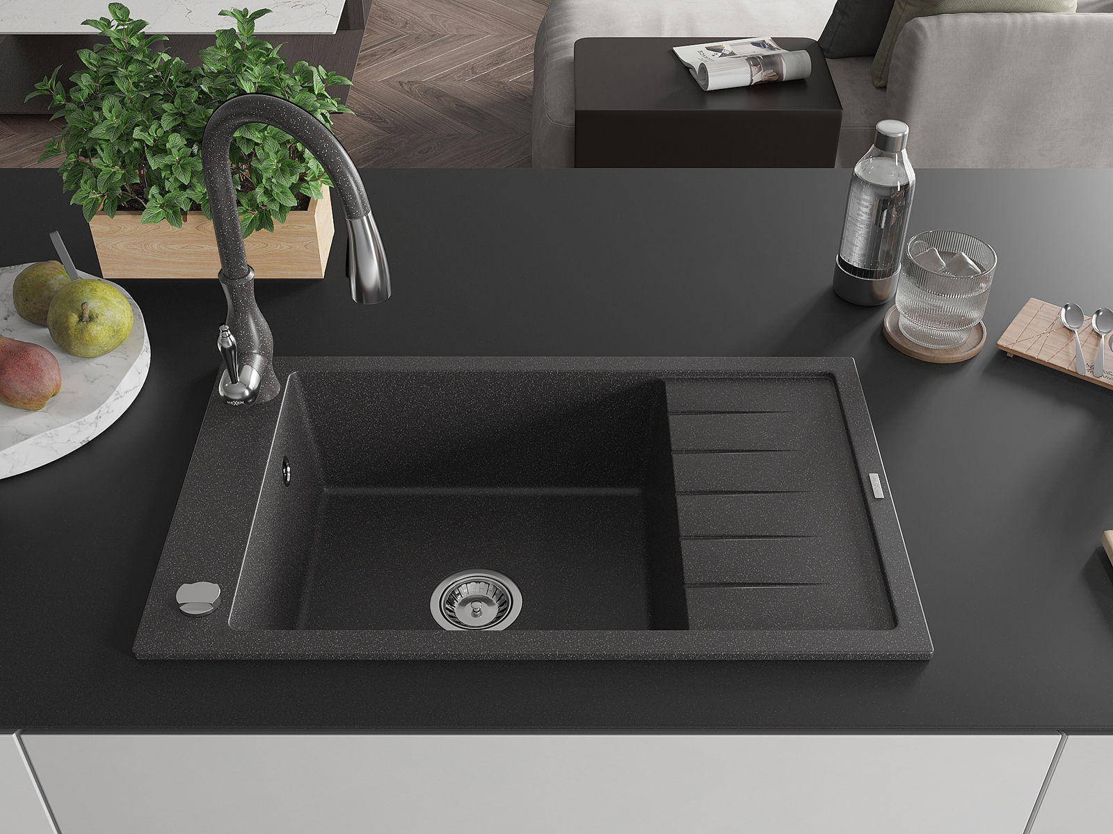Povrch umývadla je odolný voči škvrnám a sfarbeniu, vďaka čomu sa ľahko čistí a zachováva si svoju farbu po dlhú dobu. Estetický a prakticky dopĺňajúci každú kuchyňu.