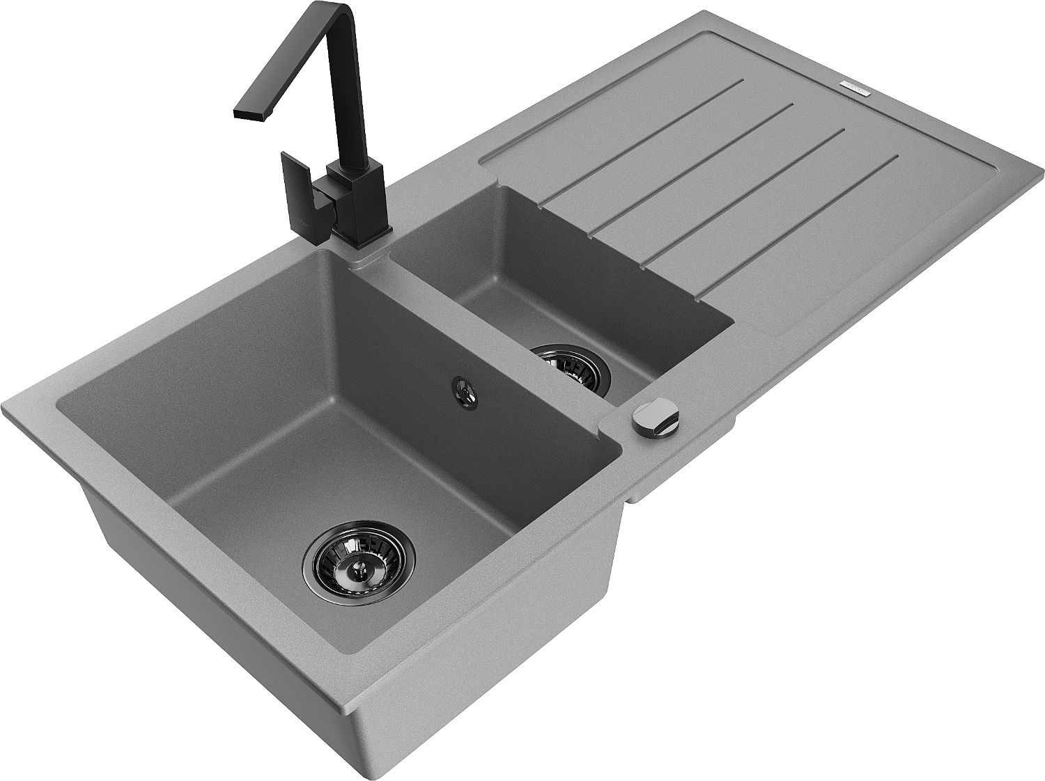 Mexen Andres granitový drez 1,5-komorový s odkvapkávačom a kuchynskou batériou Rita, sivý - 6515-71-670300-70-B
