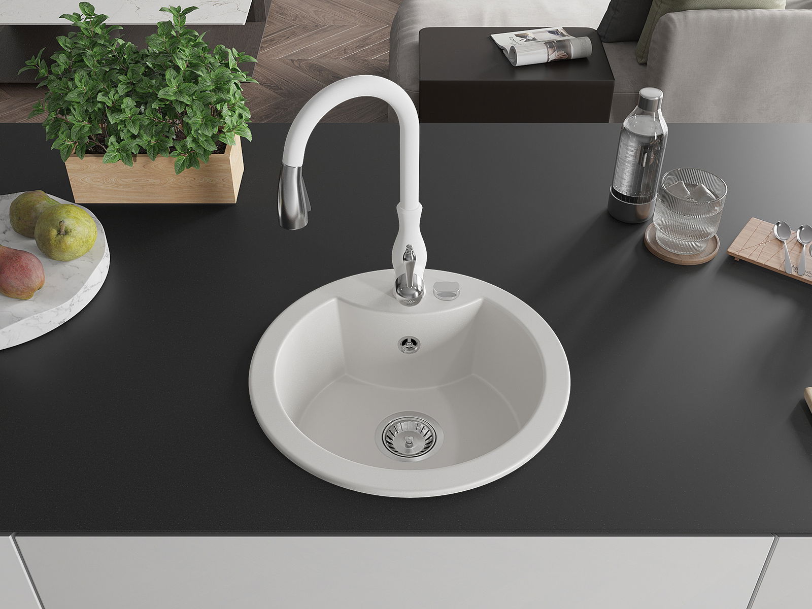 Povrch umývadla je odolný voči škvrnám a sfarbeniu, vďaka čomu sa ľahko čistí a zachováva si svoju farbu po dlhú dobu. Estetický a prakticky dopĺňajúci každú kuchyňu.