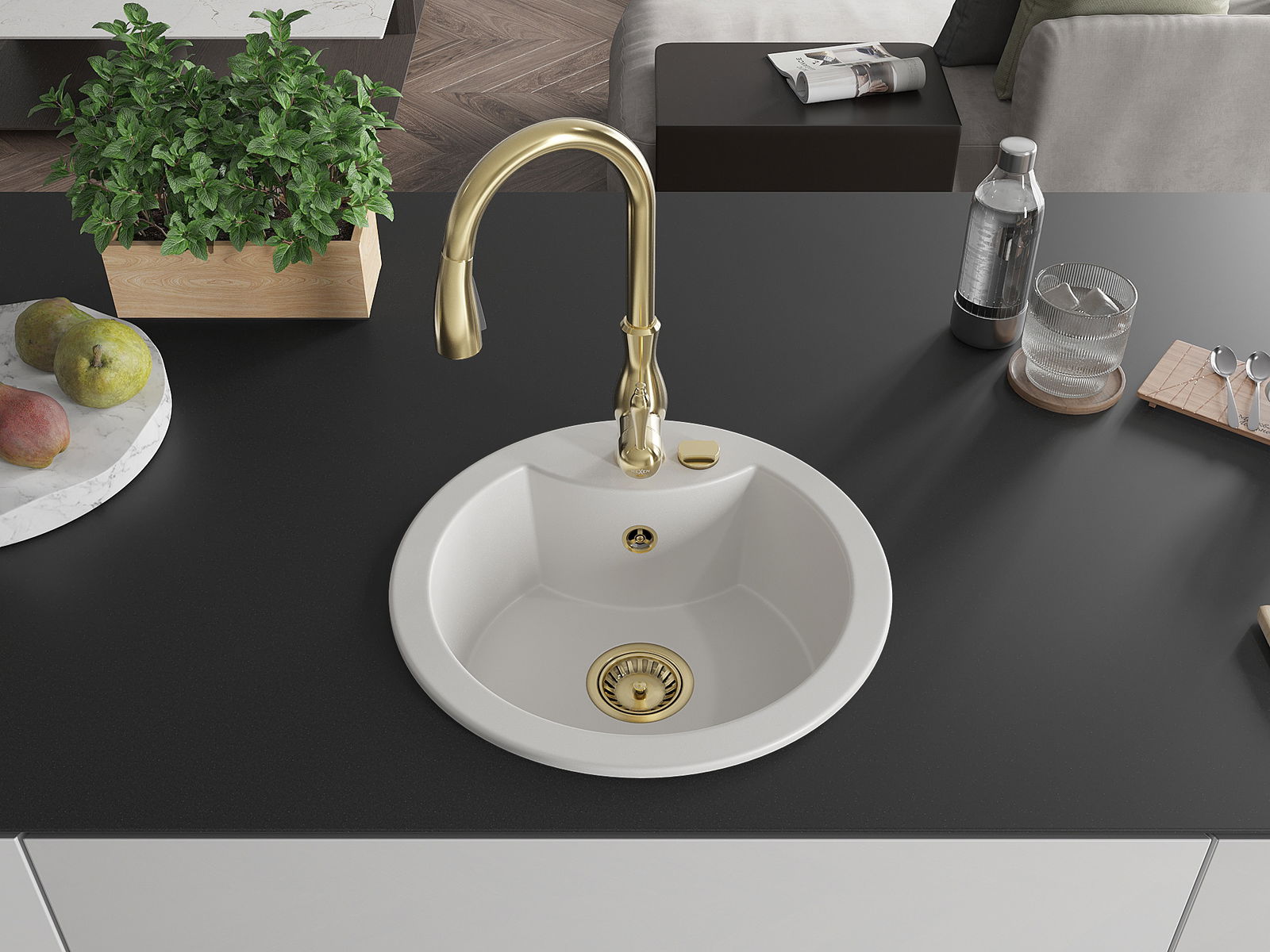 Povrch umývadla je odolný voči škvrnám a sfarbeniu, vďaka čomu sa ľahko čistí a zachováva si svoju farbu po dlhú dobu. Estetický a prakticky dopĺňajúci každú kuchyňu.