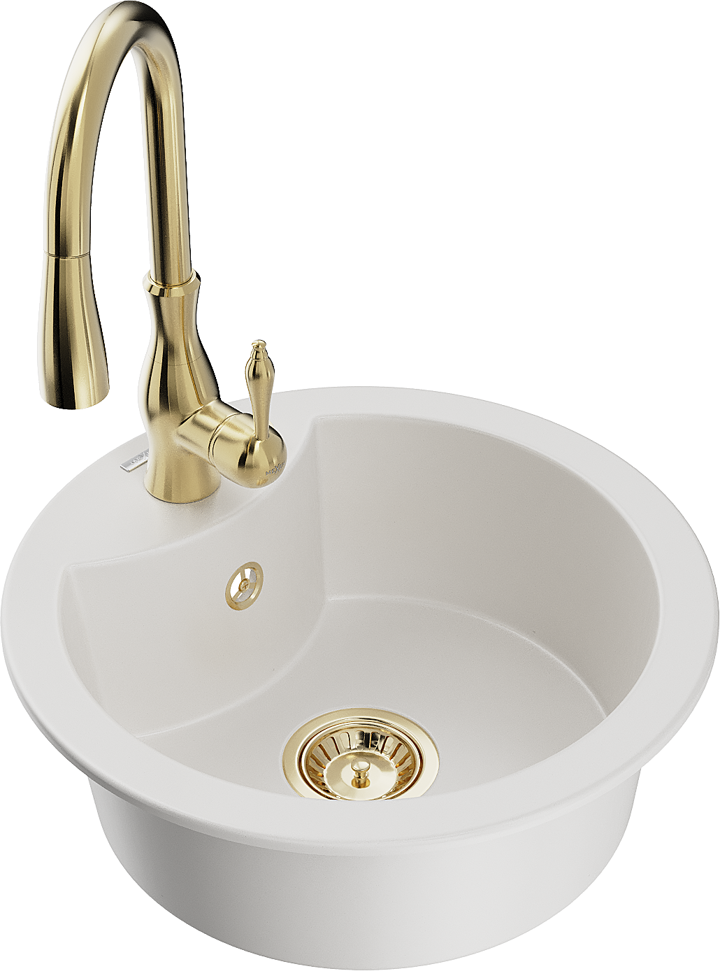 Mexen Diego žulový kuchynský drez 1-komorový s kuchynskou batériou Savita, biely - 6512-20-672601-50