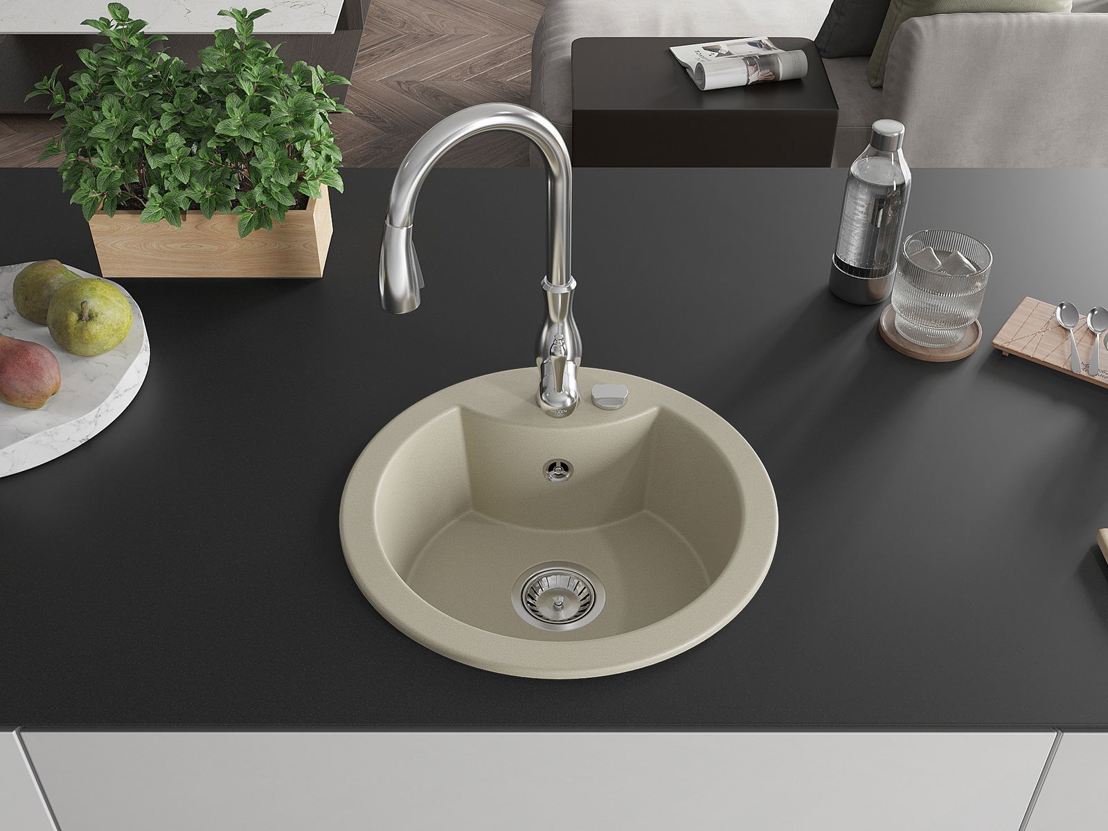 Povrch umývadla je odolný voči škvrnám a sfarbeniu, vďaka čomu sa ľahko čistí a zachováva si svoju farbu po dlhú dobu. Estetický a prakticky dopĺňajúci každú kuchyňu.