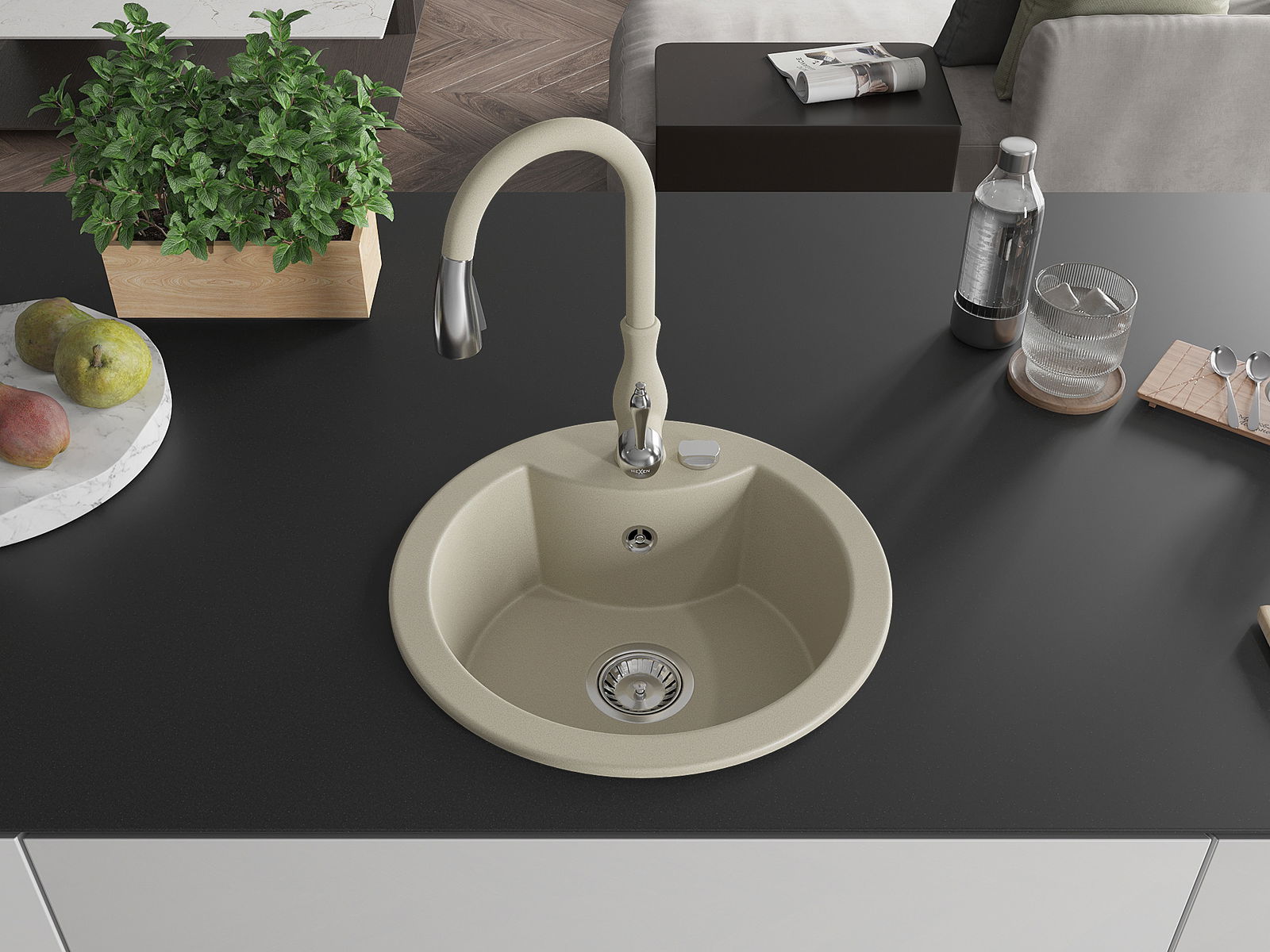 Povrch umývadla je odolný voči škvrnám a sfarbeniu, vďaka čomu sa ľahko čistí a zachováva si svoju farbu po dlhú dobu. Estetický a prakticky dopĺňajúci každú kuchyňu.