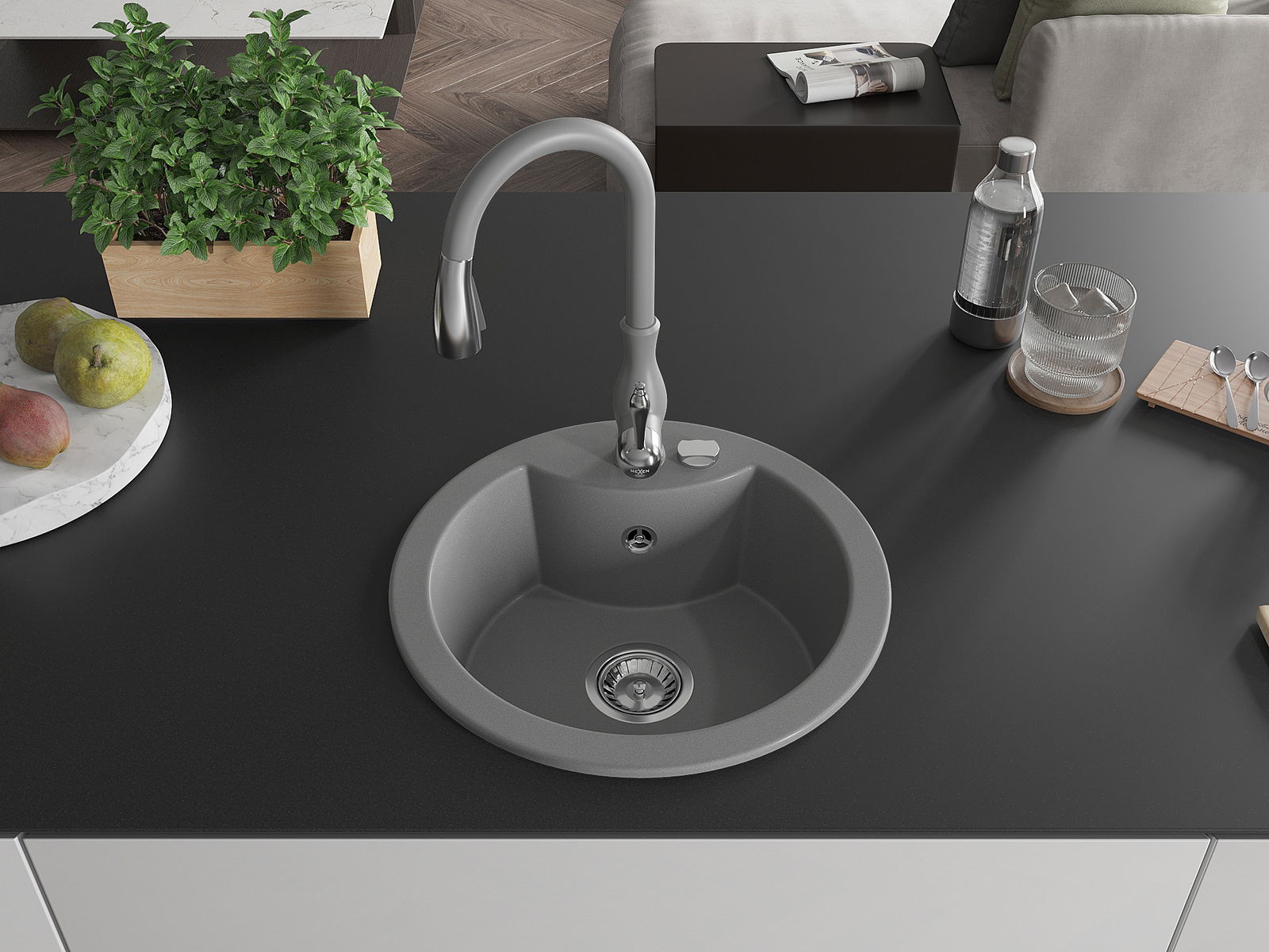 Povrch umývadla je odolný voči škvrnám a sfarbeniu, vďaka čomu sa ľahko čistí a zachováva si svoju farbu po dlhú dobu. Estetický a prakticky dopĺňajúci každú kuchyňu.