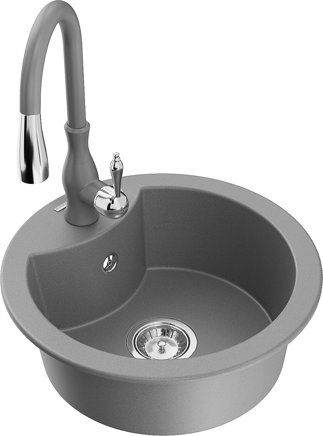 Mexen Diego kuchynský drez žulový 1-komorový s kuchynskou batériou Savita, sivý - 6512-71-672601-71