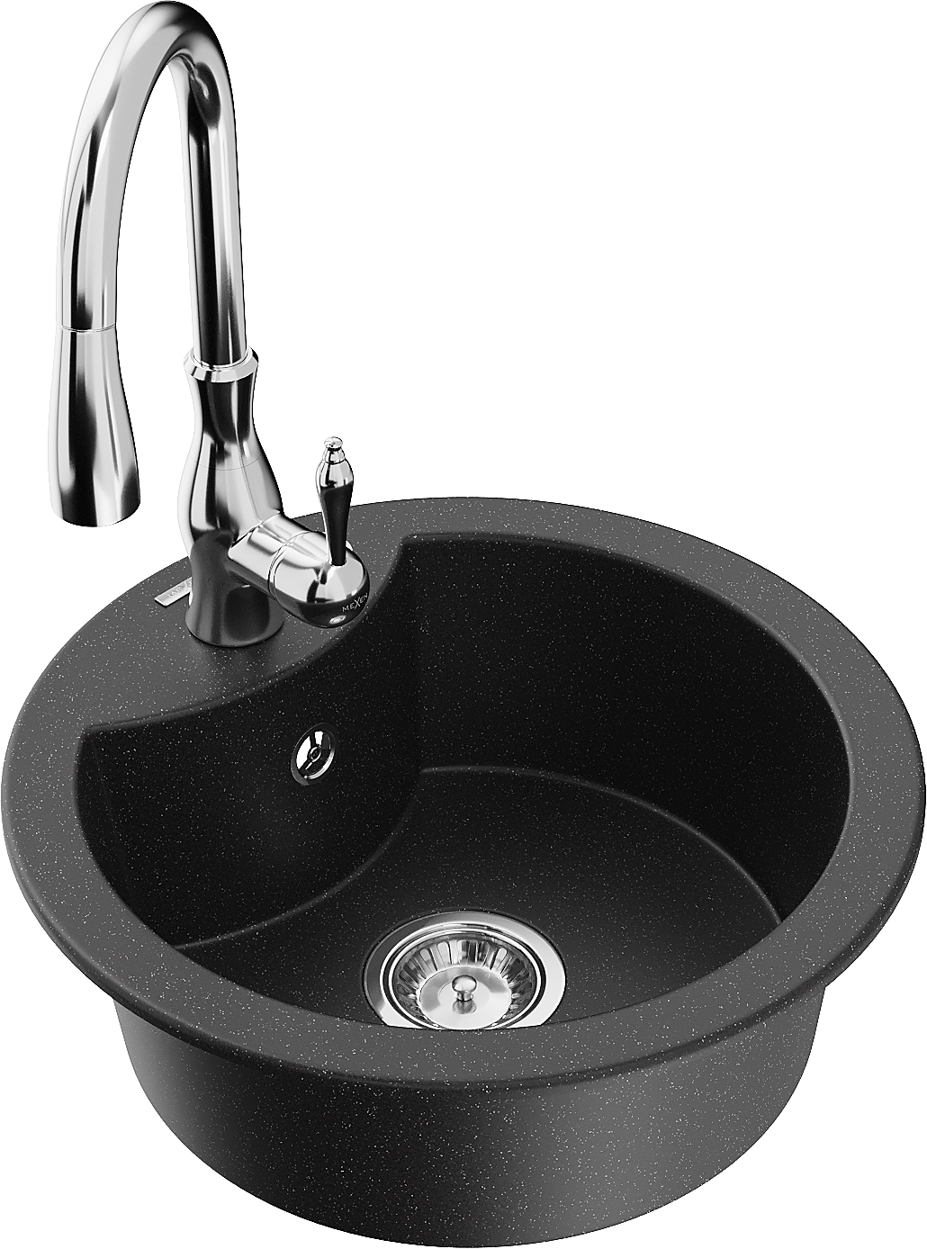 Mexen Diego granitový kuchynský drez 1-komorový s kuchynskou batériou Savita, čierny/strieborný metalik - 6512-73-672601-00