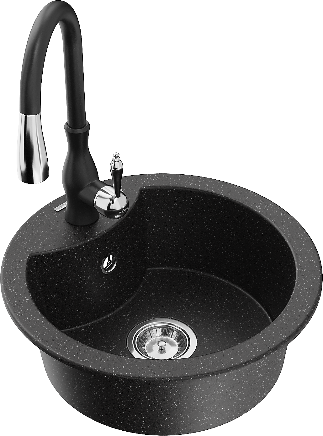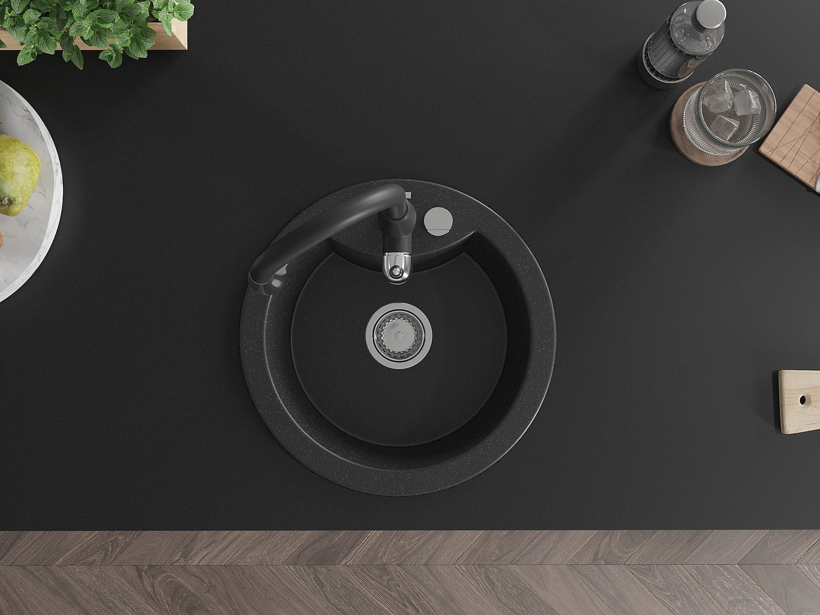 Mexen Diego 1-komorový granitový drez s kuchynskou batériou Savita, čierny/strieborný metalický - 6512-73-672601-70