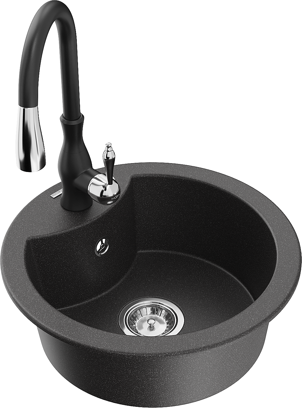 Mexen Diego žulový kuchynský drez s 1 komorou a kuchynskou batériou Savita, čierny škvrnitý - 6512-76-672601-70