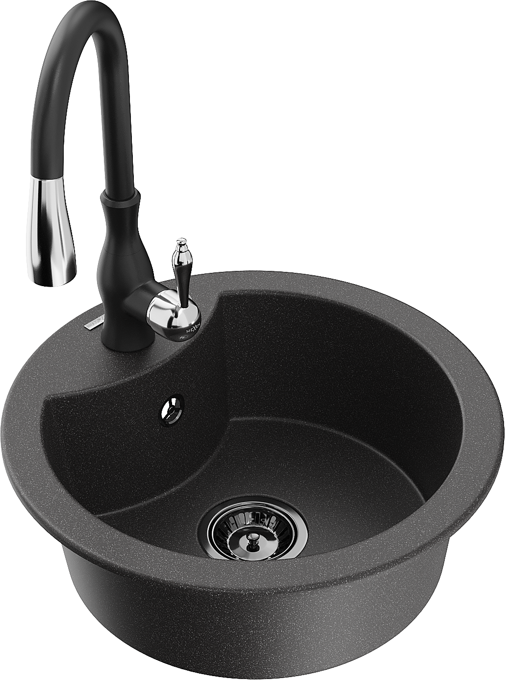 Mexen Diego žulový drez 1-komorový s kuchynskou batériou Savita, čierny bodkovaný - 6512-76-672601-70-B