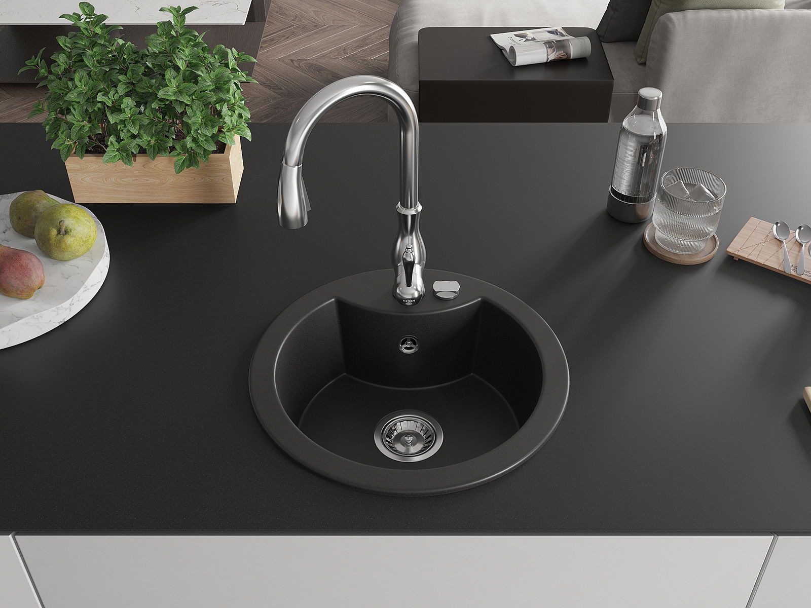 Povrch umývadla je odolný voči škvrnám a sfarbeniu, vďaka čomu sa ľahko čistí a zachováva si svoju farbu po dlhú dobu. Estetický a prakticky dopĺňajúci každú kuchyňu.