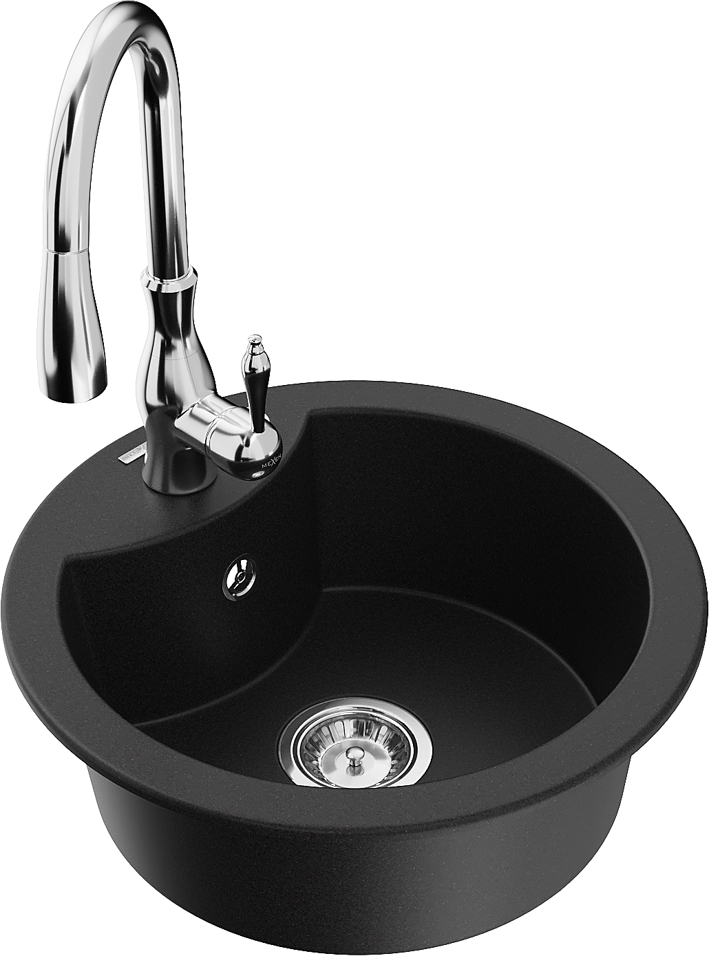 Mexen Diego žulový kuchynský drez s jednou komorou a kuchynskou batériou Savita, čierny - 6512-77-672601-00