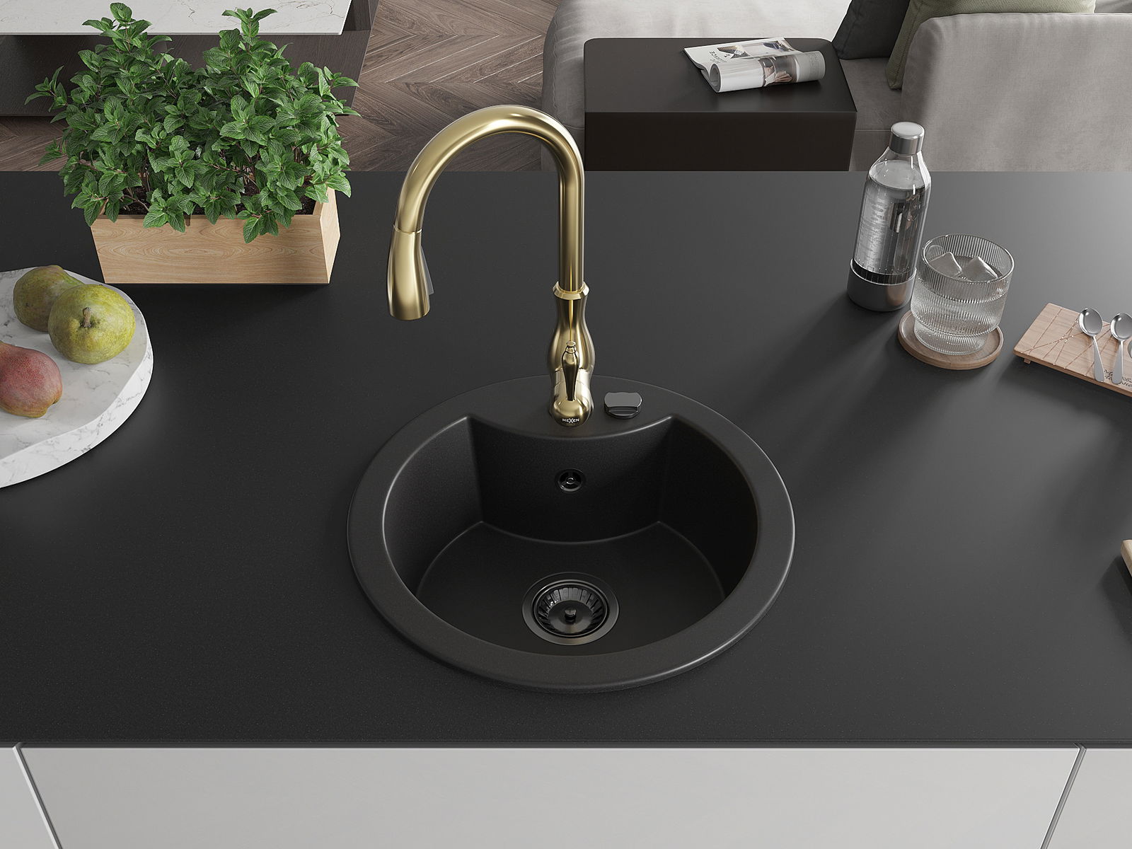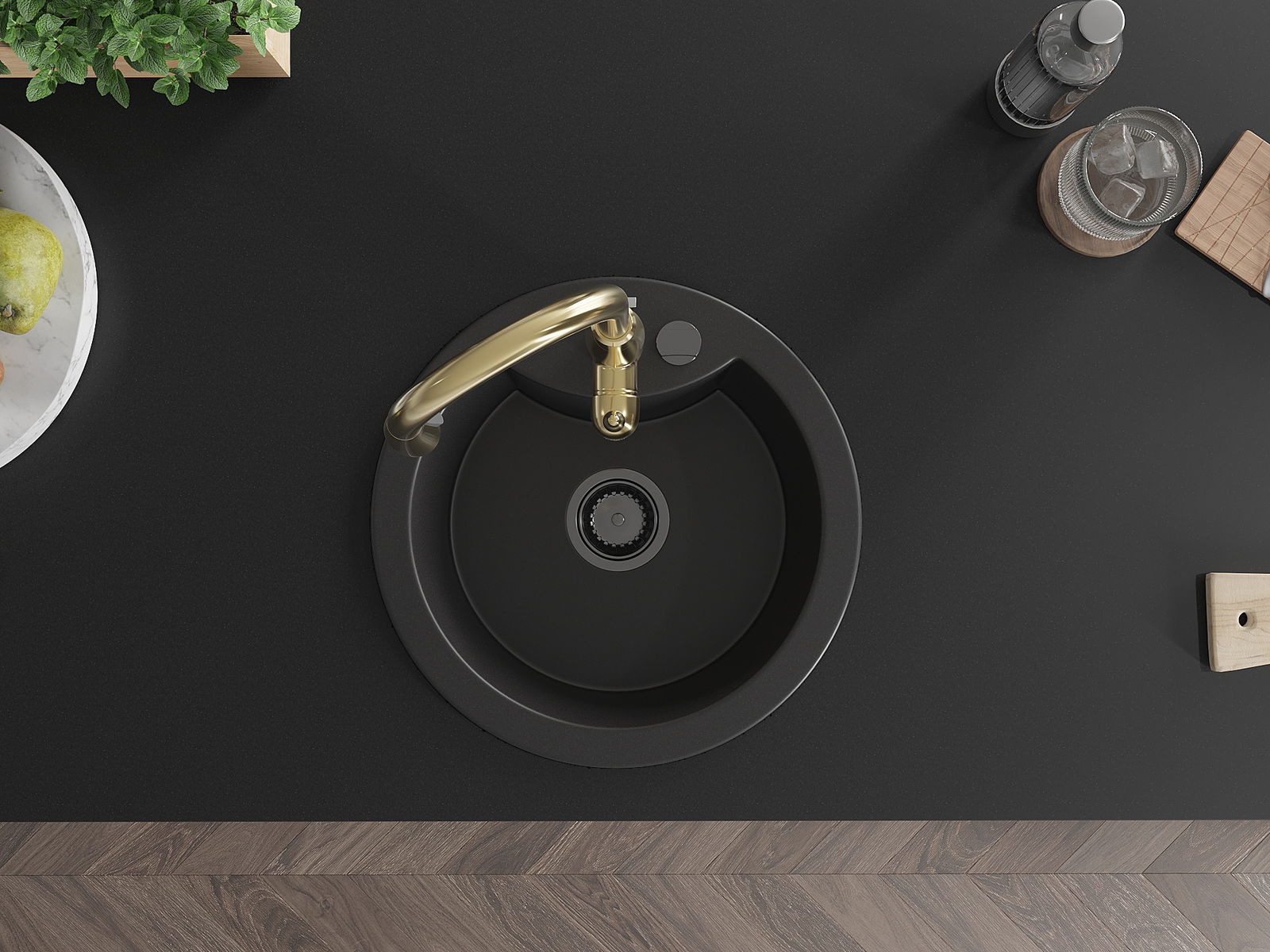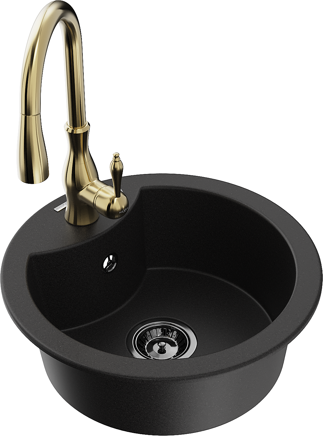 Mexen Diego žulový drez s jednou komorou s kuchynskou batériou Savita, čierny - 6512-77-672601-50-B