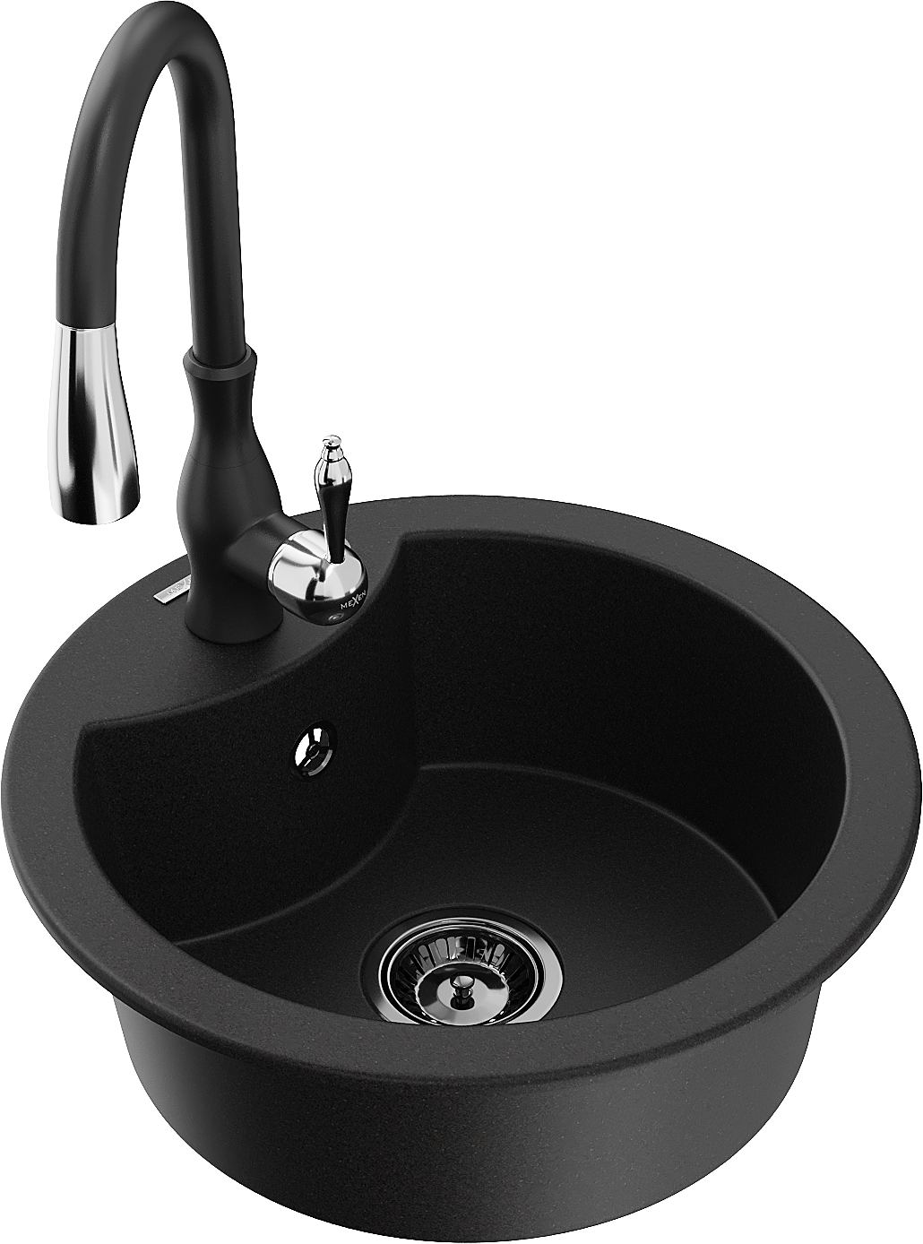 Mexen Diego žulový kuchynský drez s 1 komorou a kuchynskou batériou Savita, čierny - 6512-77-672601-70-B