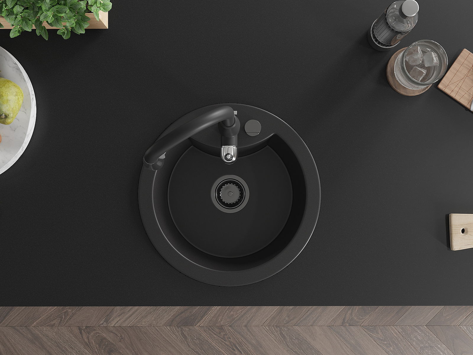 Povrch umývadla je odolný voči škvrnám a sfarbeniu, vďaka čomu sa ľahko čistí a zachováva si svoju farbu po dlhú dobu. Estetický a prakticky dopĺňajúci každú kuchyňu.