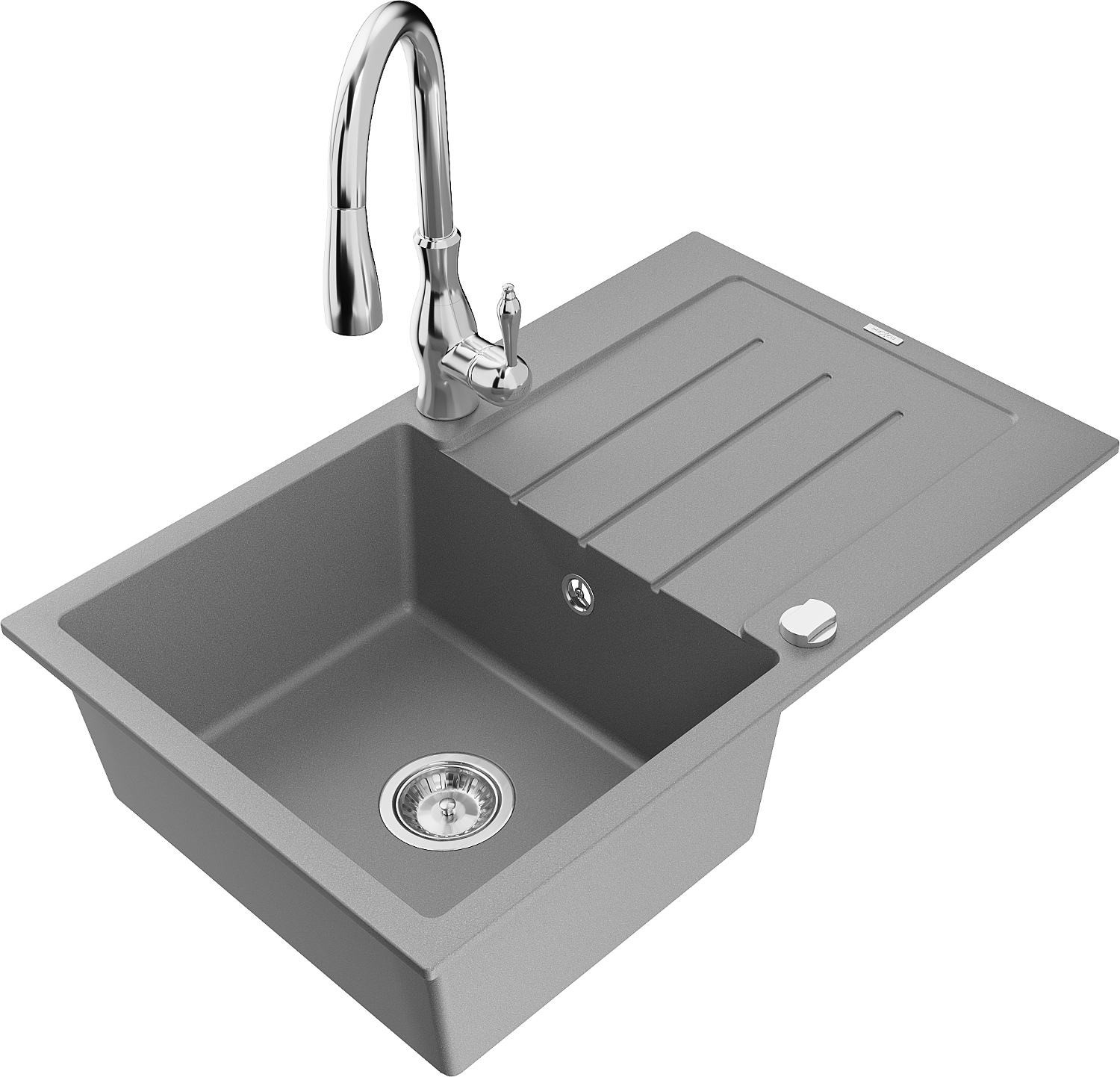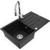 Mexen Bruno žulový drez s 1 komorou a odkvapkávačom a kuchynskou batériou Savita, sivý - 6513-71-672601-00