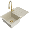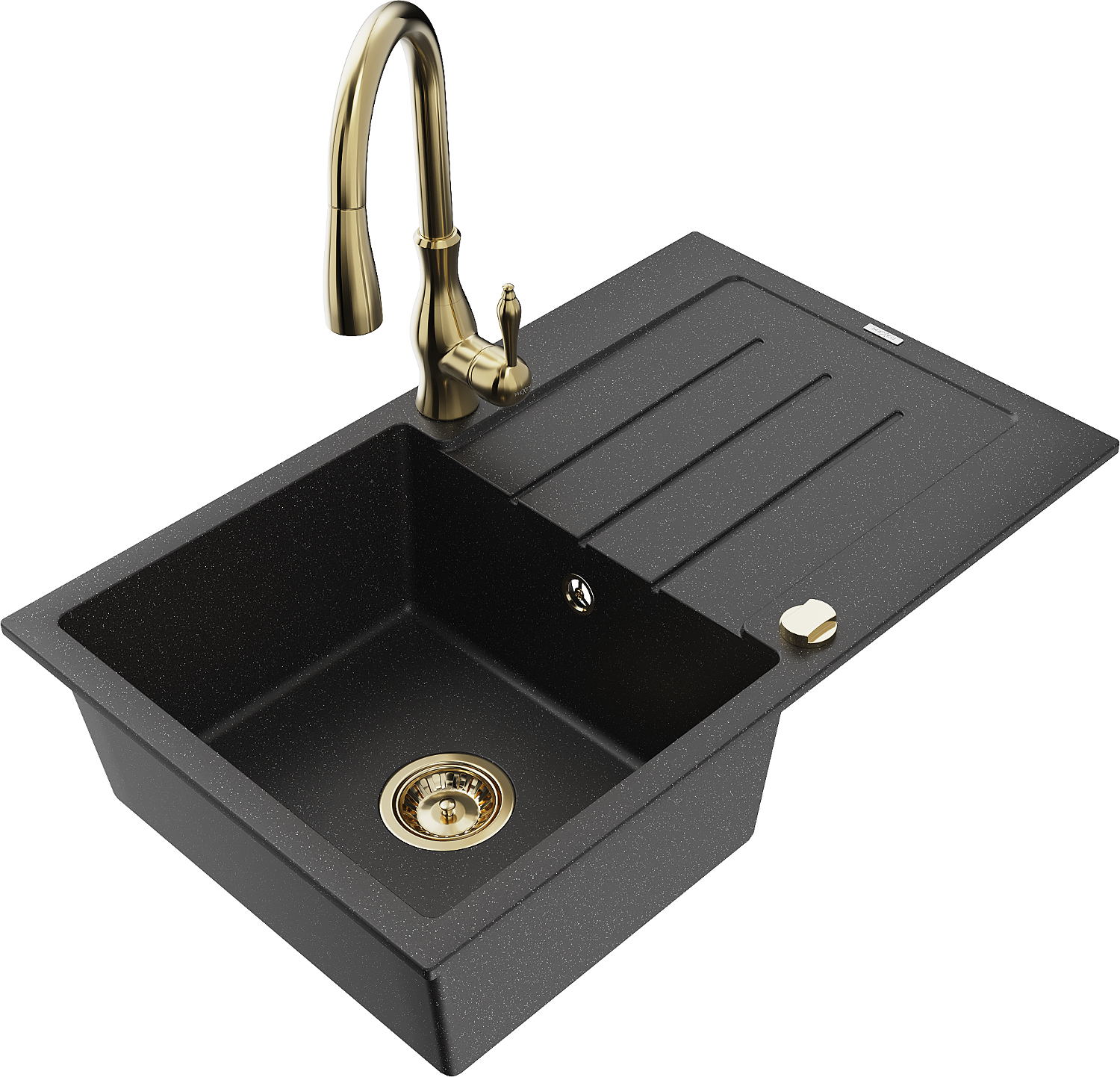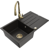 Mexen Bruno granitový drez s 1 komorou s odkvapkávačom a kuchynskou batériou Savita, čierny/strieborný metalíza
