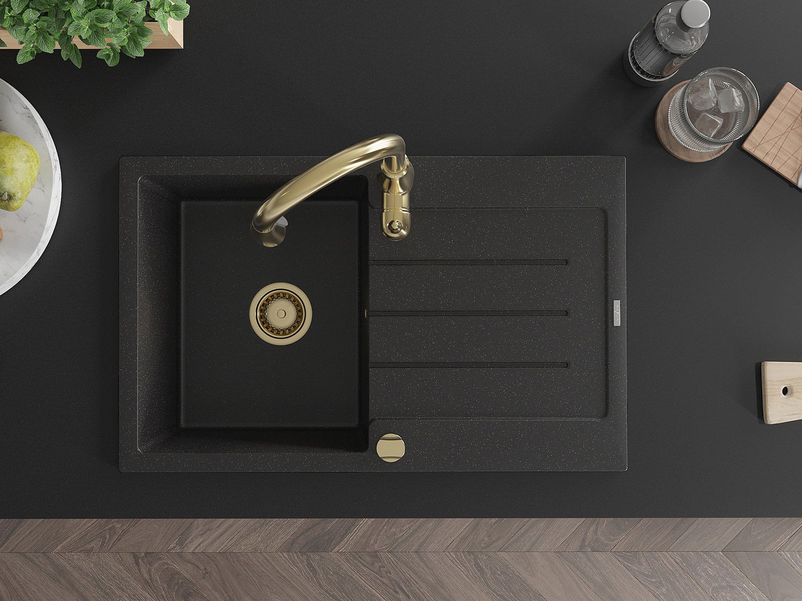 Drez bol vyrobený z vysoko kvalitného granitu. Predstavuje elegantné, ale predovšetkým praktické doplnenie každej kuchyne, nezávisle od jej štýlu. Vysoká kvalita a trvácnosť granitu zaisťujú dlhodobé používanie.