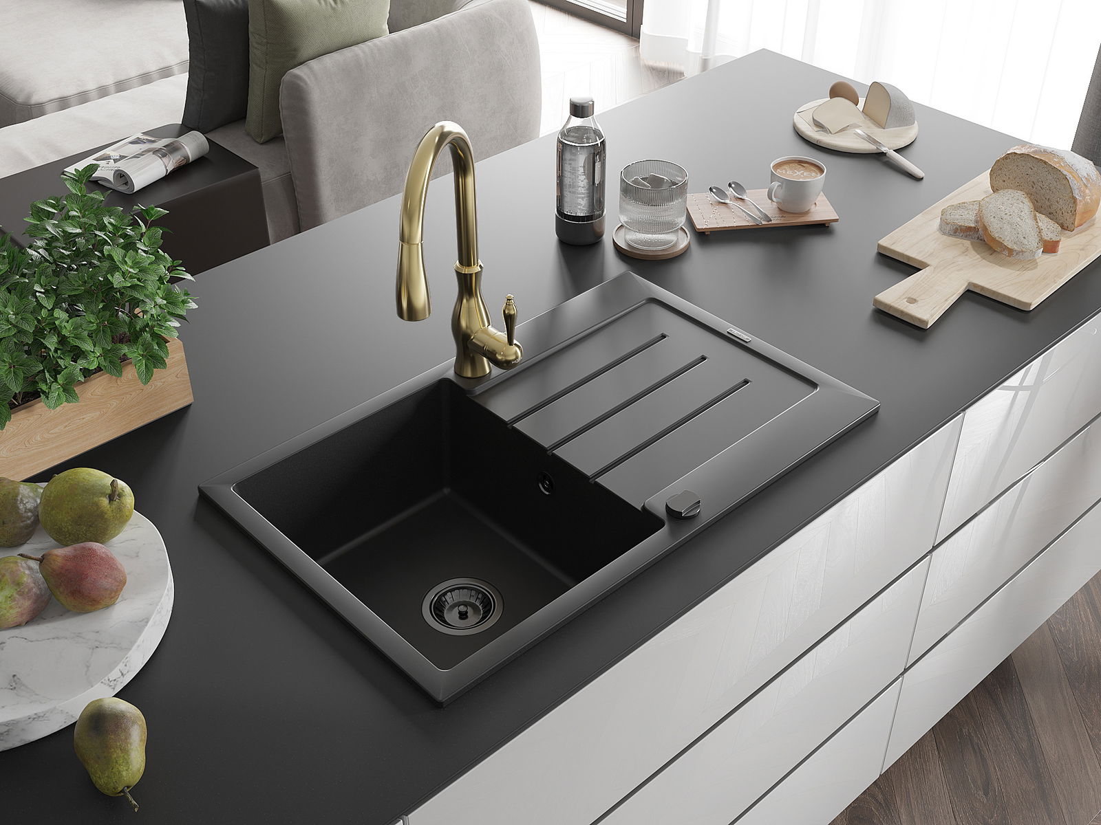 Povrch umývadla je odolný voči škvrnám a sfarbeniu, vďaka čomu sa ľahko čistí a zachováva si svoju farbu po dlhú dobu. Estetický a prakticky dopĺňajúci každú kuchyňu.