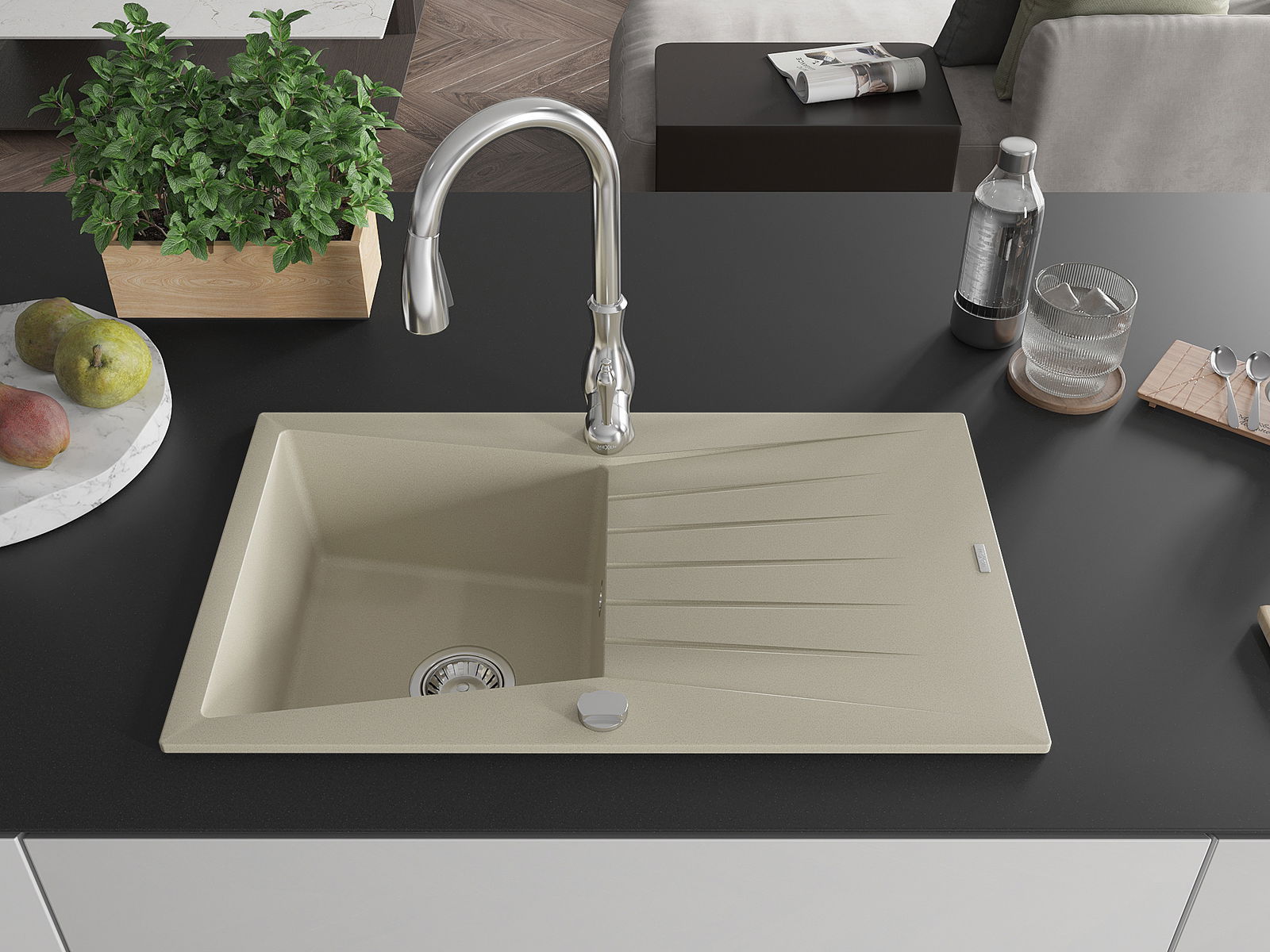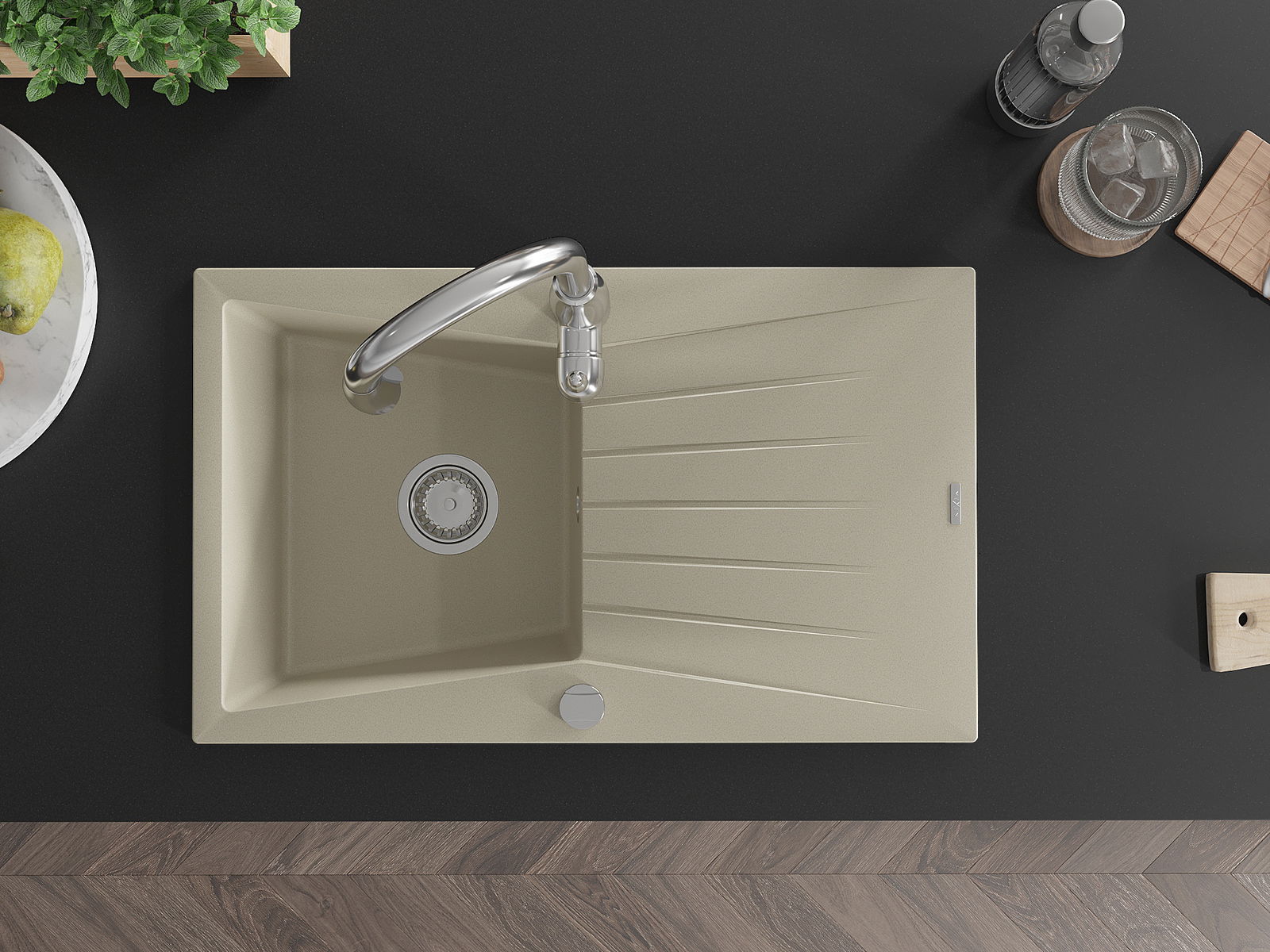 Povrch umývadla je odolný voči škvrnám a sfarbeniu, vďaka čomu sa ľahko čistí a zachováva si svoju farbu po dlhú dobu. Estetický a prakticky dopĺňajúci každú kuchyňu.