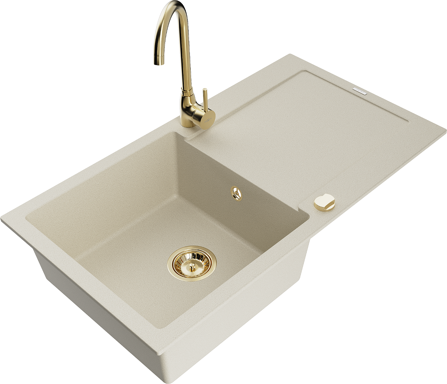 Mexen Leo žulový kuchynský drez 1-komorový s odkvapkávačom a kuchynskou batériou Telma, béžový - 6501-69-670200-50