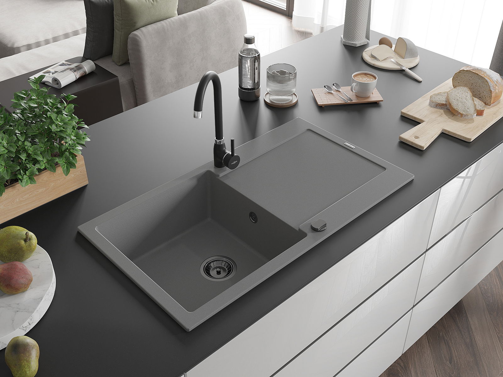 Povrch umývadla je odolný voči škvrnám a sfarbeniu, vďaka čomu sa ľahko čistí a zachováva si svoju farbu po dlhú dobu. Estetický a prakticky dopĺňajúci každú kuchyňu.