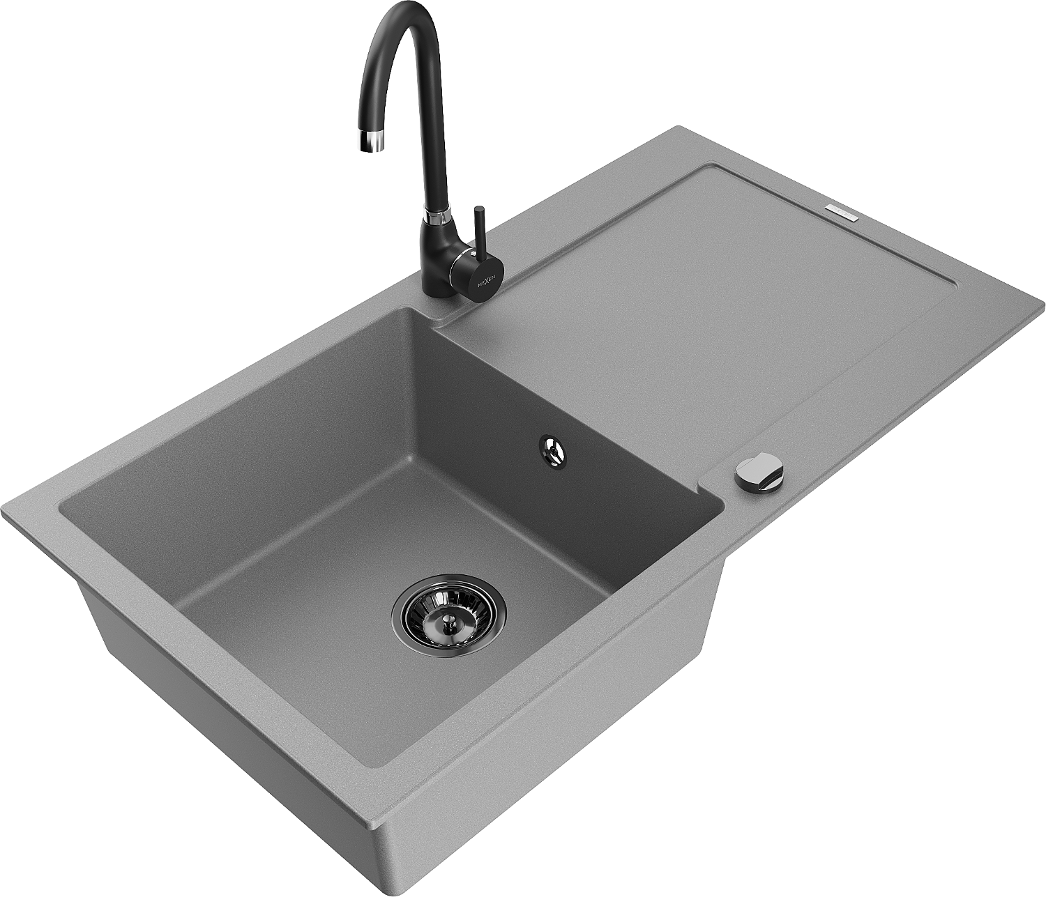 Mexen Leo granitový drez 1-komorový s odkvapkávačom a kuchynskou batériou Telma, sivý - 6501-71-670200-70-B