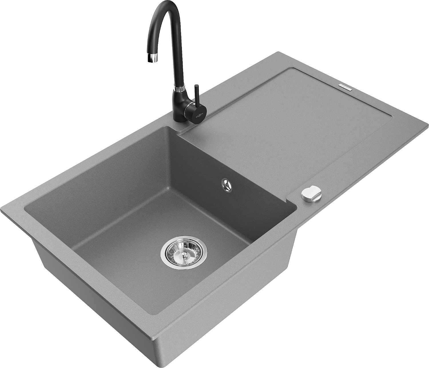 Mexen Leo žulový drez 1-komorový s odkvapkávačom a kuchynskou batériou Telma, sivý - 6501-71-670200-70
