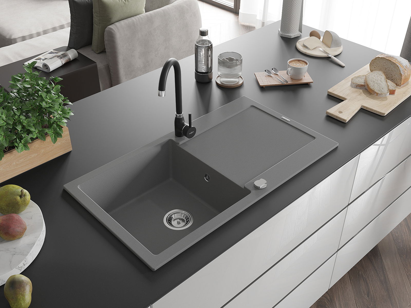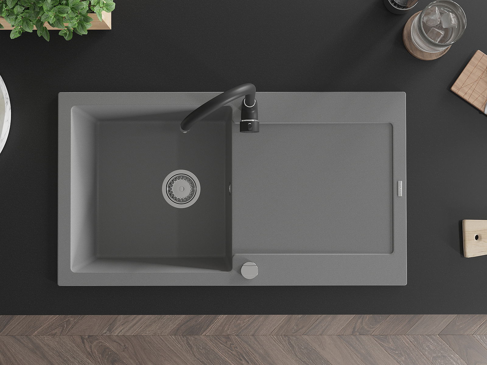 Povrch umývadla je odolný voči škvrnám a sfarbeniu, vďaka čomu sa ľahko čistí a zachováva si svoju farbu po dlhú dobu. Estetický a prakticky dopĺňajúci každú kuchyňu.