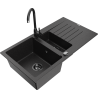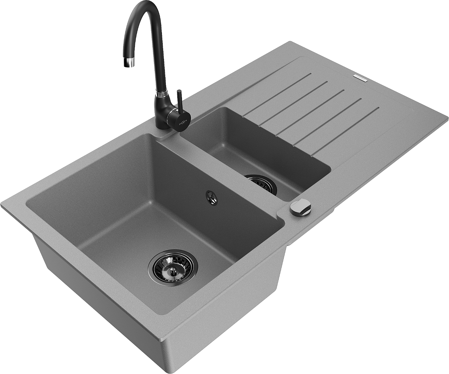 Mexen Matias granitový drez 1,5-komorový s odkvapkávačom a kuchynskou batériou Telma, sivý - 6502-71-670200-70-B
