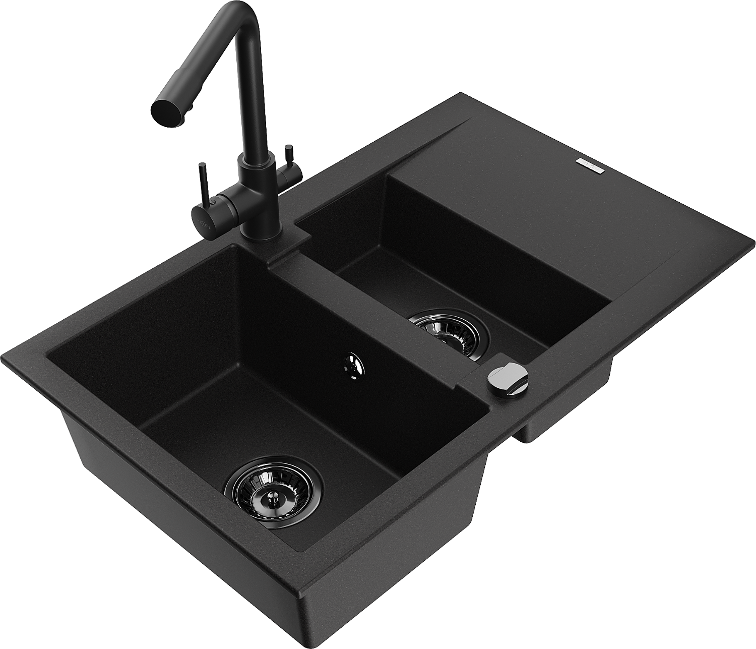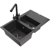 Mexen Gaspar granitový drez s objemom 1,5 komory s odkvapom a kuchynskou batériou Duero, čierny - 6507-77-671600-70-B