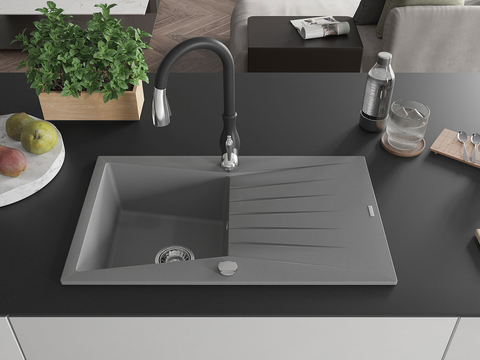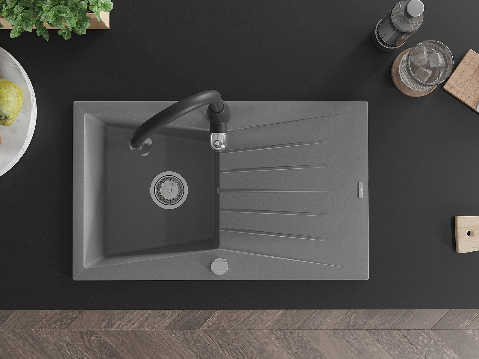 Povrch umývadla je odolný voči škvrnám a sfarbeniu, vďaka čomu sa ľahko čistí a zachováva si svoju farbu po dlhú dobu. Estetický a prakticky dopĺňajúci každú kuchyňu.