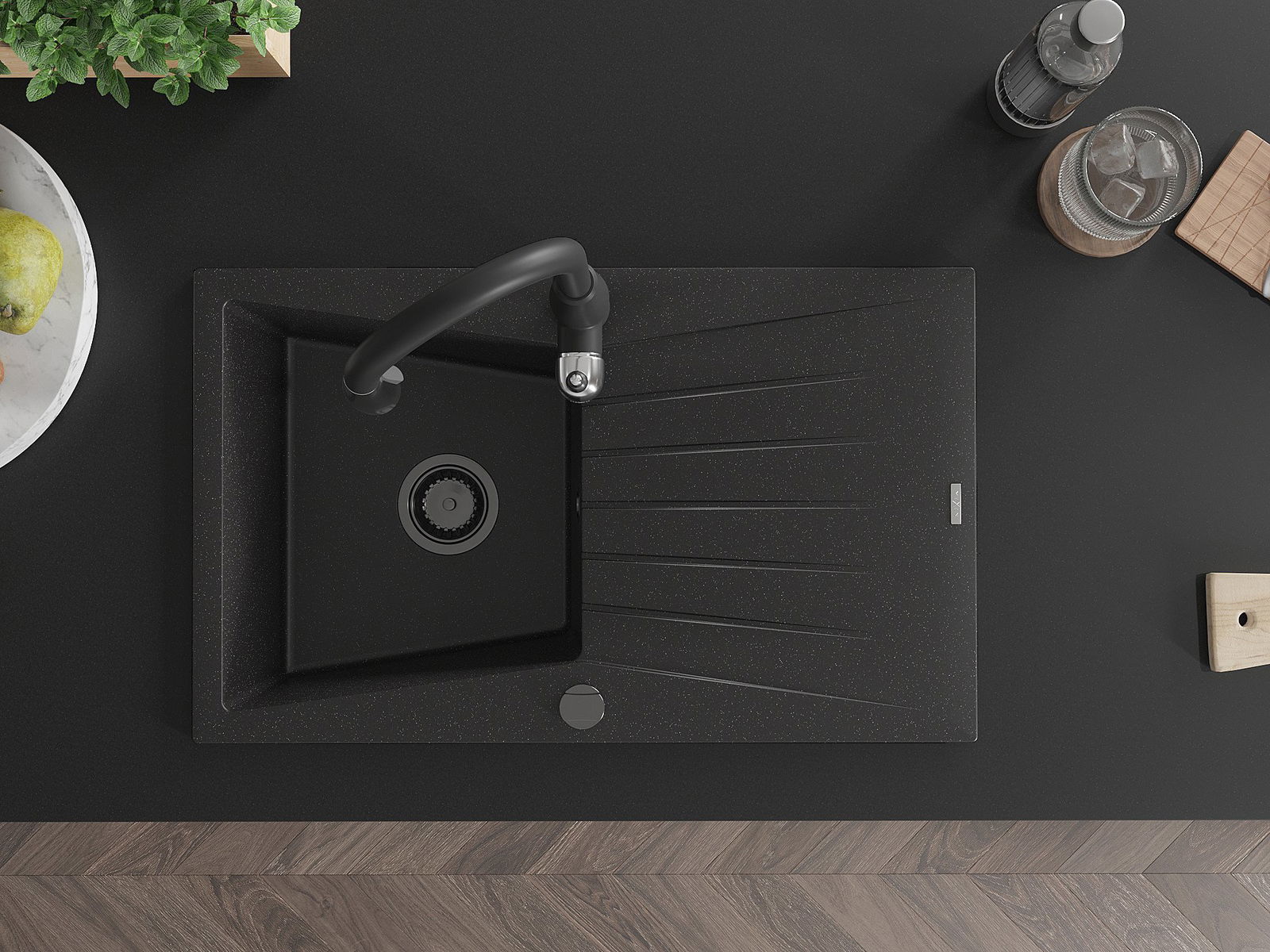 Drez bol vyrobený z vysoko kvalitného granitu. Predstavuje elegantné, ale predovšetkým praktické doplnenie každej kuchyne, nezávisle od jej štýlu. Vysoká kvalita a trvácnosť granitu zaisťujú dlhodobé používanie.