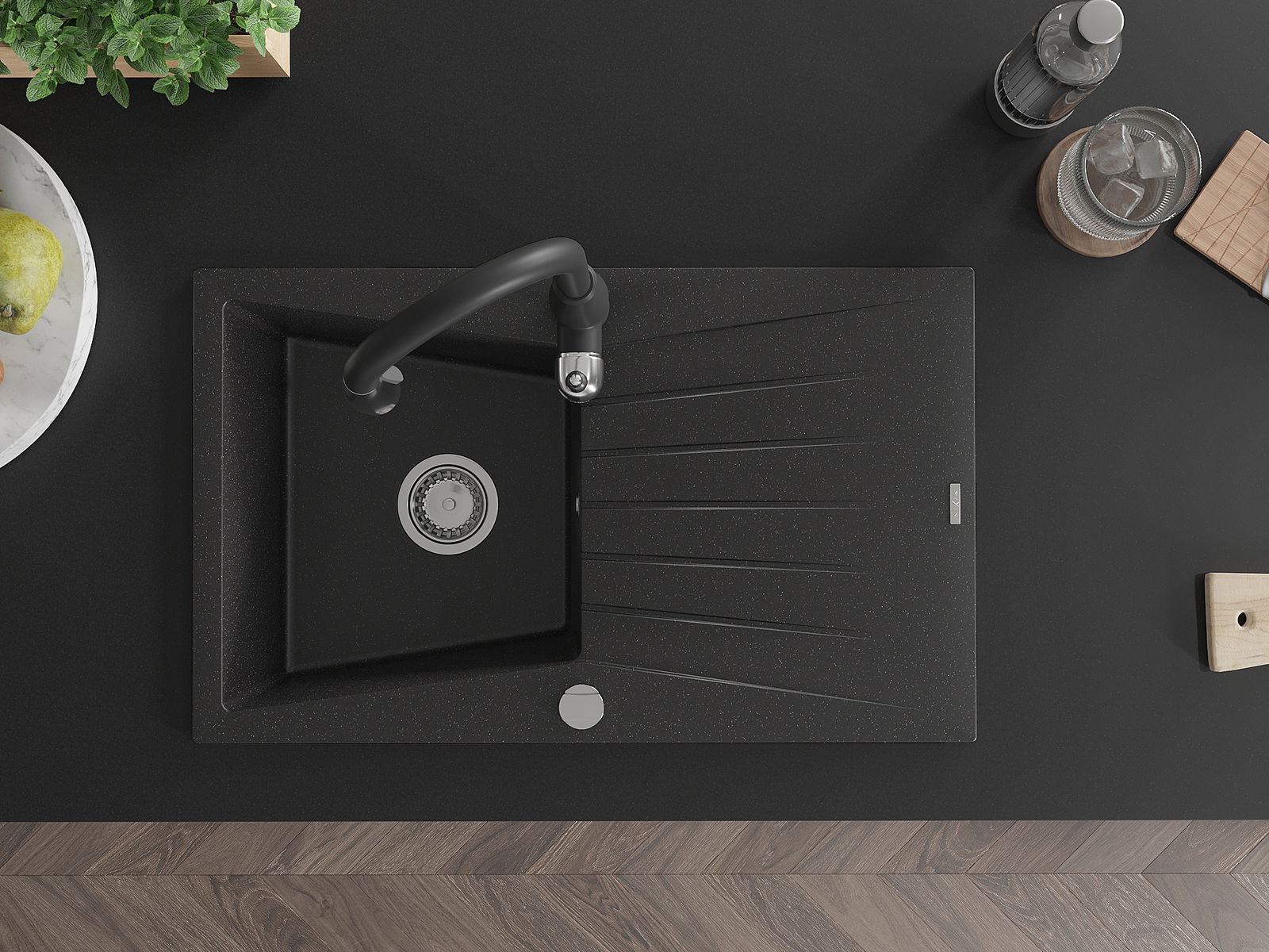 Drez bol vyrobený z vysoko kvalitného granitu. Predstavuje elegantné, ale predovšetkým praktické doplnenie každej kuchyne, nezávisle od jej štýlu. Vysoká kvalita a trvácnosť granitu zaisťujú dlhodobé používanie.